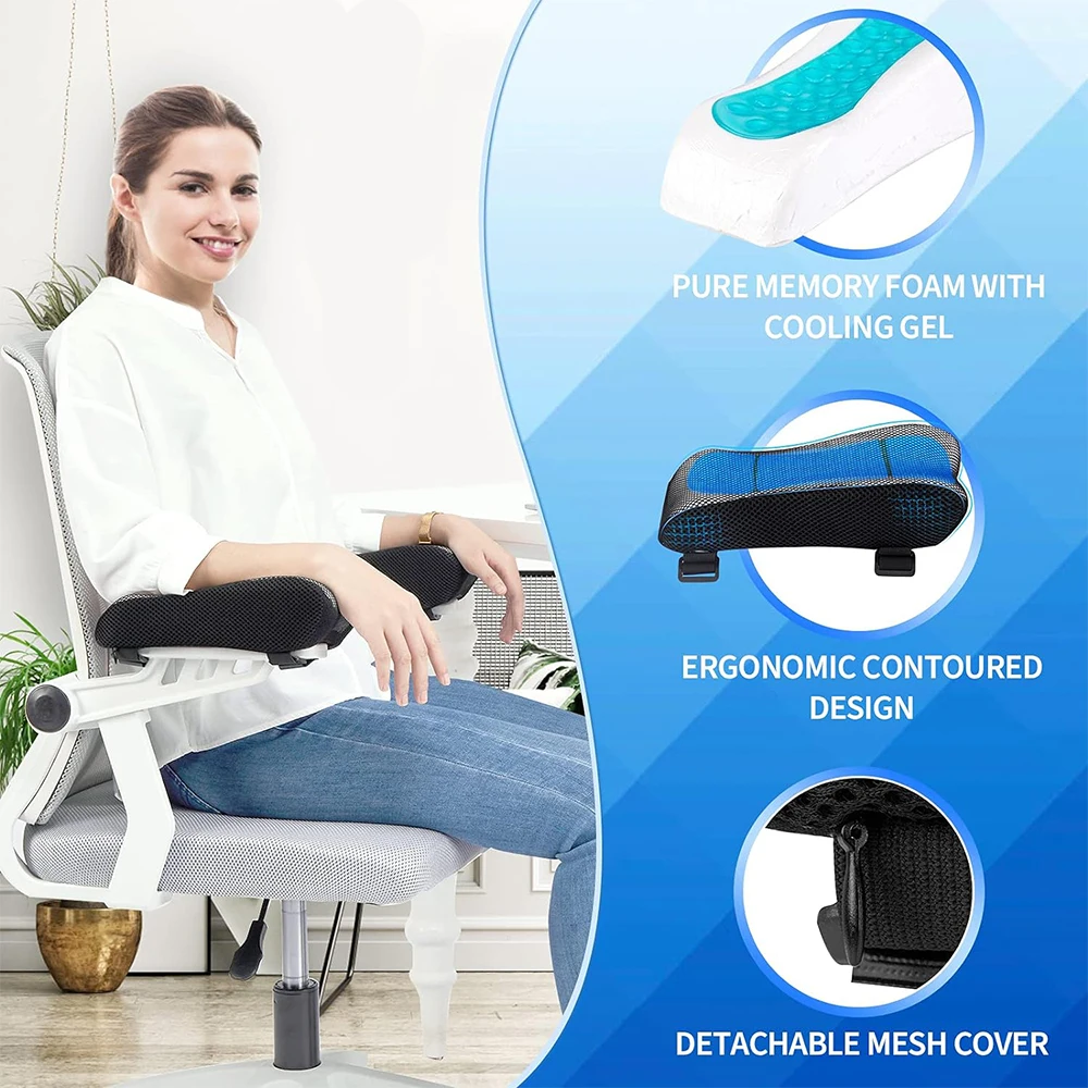 1Pair Upgraded Office Chair Arm Pads with Cooling Gel, Ergonomic Memory Foam Armrest Pads for Office Chair Gaming Chair Arm Rest Covers for Desk Chair Armrest Cushions