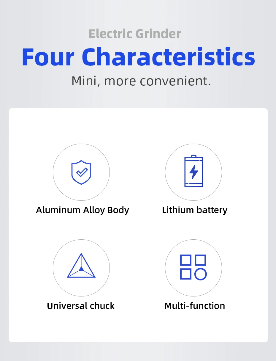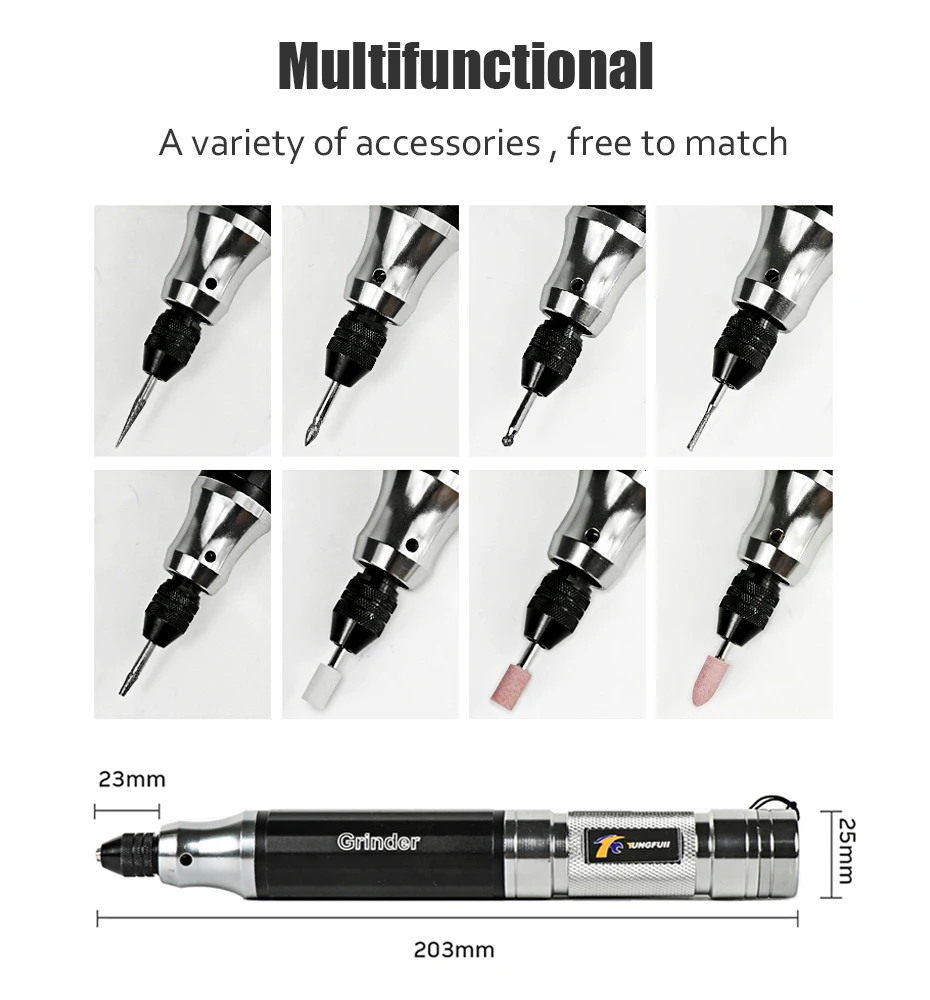 • With 0.5mm-3.2mm chuck, and general grinding head.