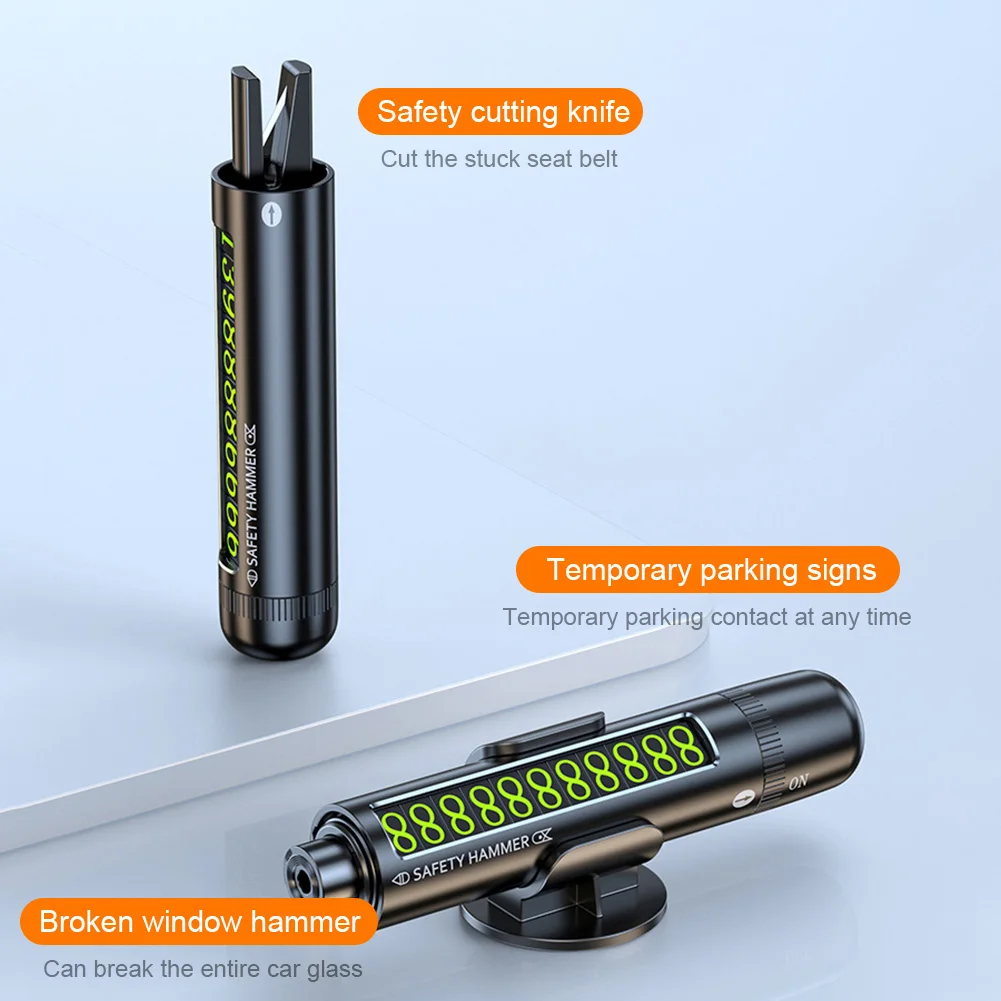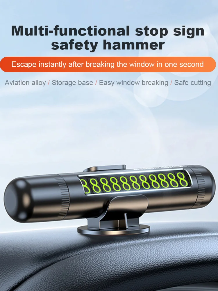 5. Multiple Reusable Number Stickers: The escape emergency hammer includes multiple sets of number stickers, allowing you to customize combinations according to your preference. These magnetic number stickers can be reused and are . The temporary parking card features a rotating closure design, which allows you to hide the numerical code. The detachable base can also be stored in a drawer or cabinet for safekeeping.