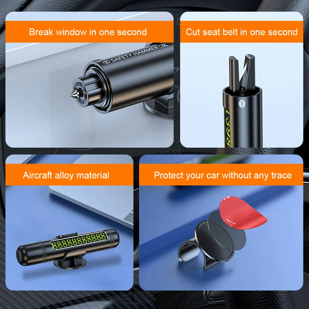3 in 1 Car Safety Hammer Aluminum Alloy Car Phone Number Card Life-Saving Glass Window Breaker Moving Car Phone Card Rescue Tool