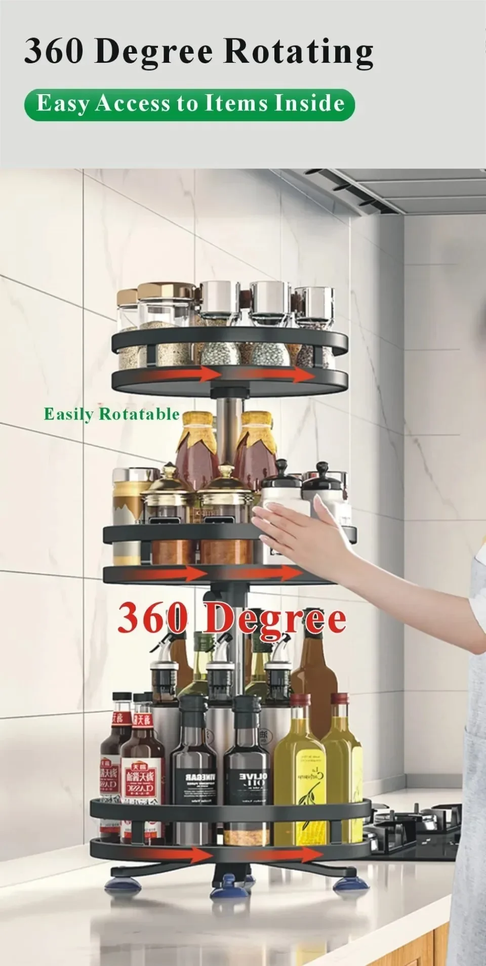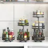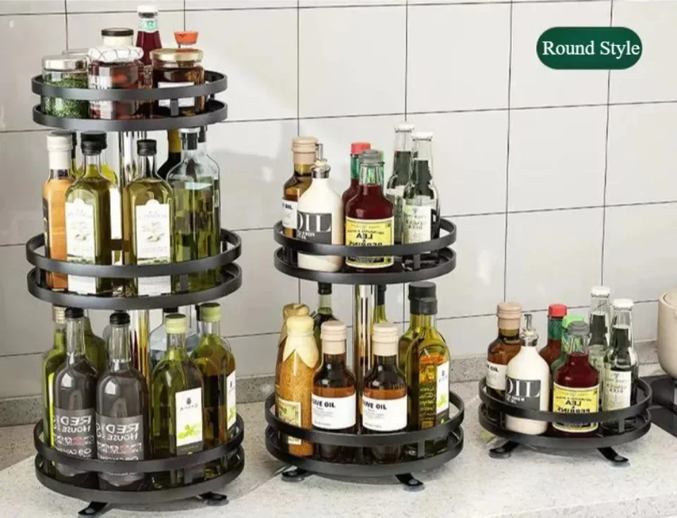 3 Tier Rotating Spice Rack Adjustable Height Spice Shelf Seasoning Organizer Multi-Function Oil Storage Racks Kitchen Organizer