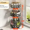 3 Tier Rotating Spice Rack Adjustable Height Spice Shelf Seasoning Organizer Multi-Function Oil Storage Racks Kitchen Organizer