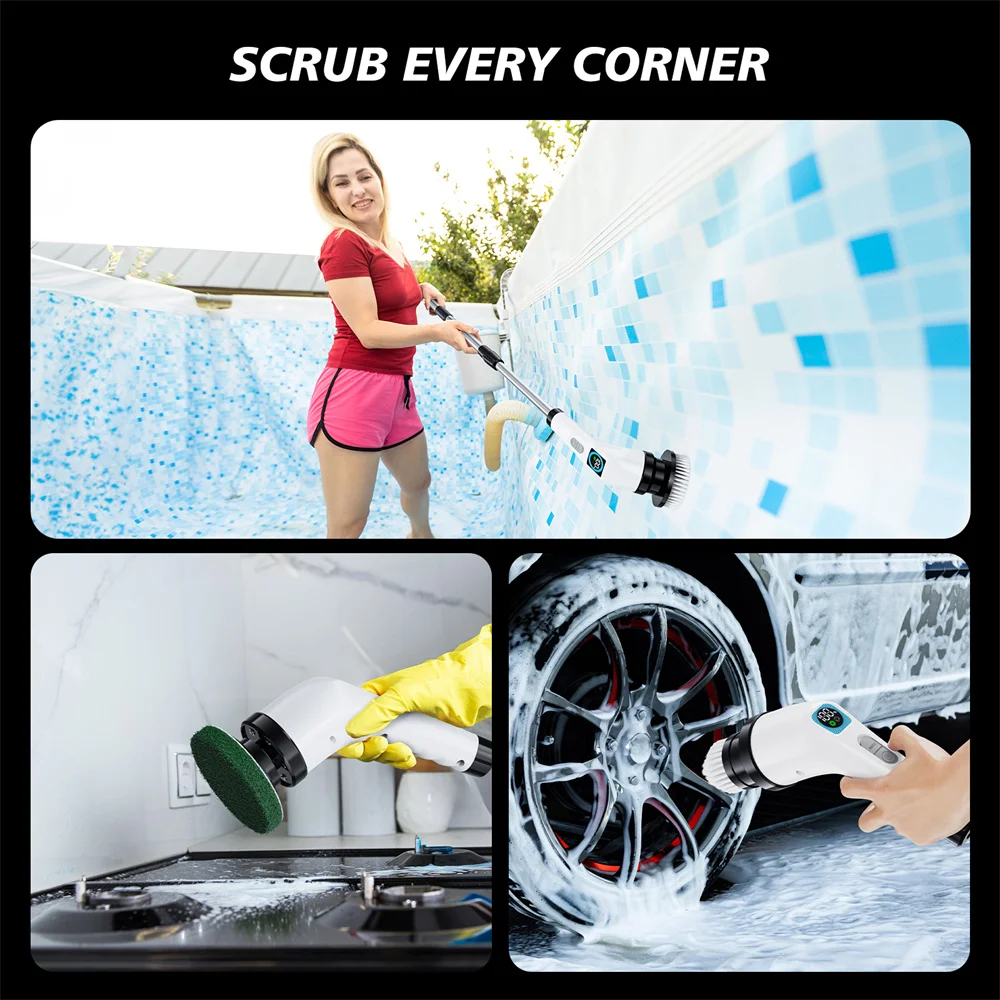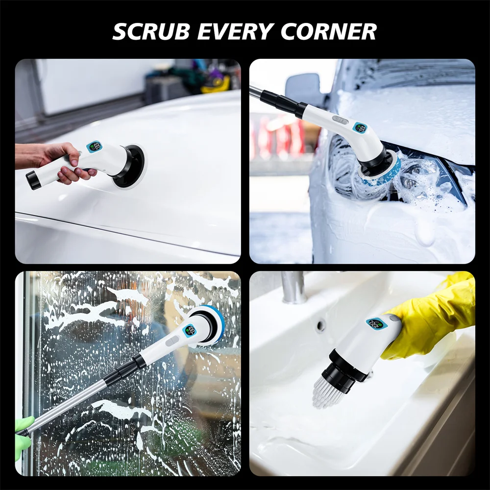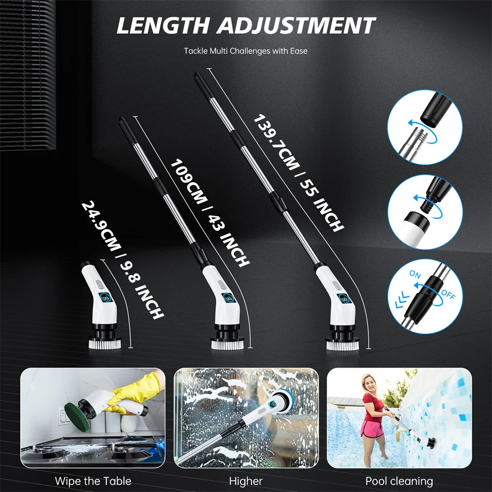 Electric Cleaning Brush 360° Rotating Spin Scrubber with 7 Adjustable Brush Heads Cleaning Brush for Corners Toilet Kitchen Bath