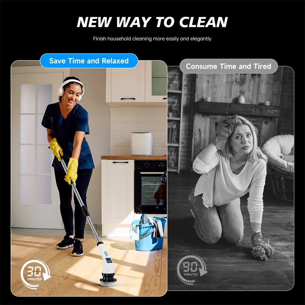 Practical and effective cleaning tools – The portable cleaning brush works powerfully with a spin speed of 360 rpm. Use the power of movement to achieve deep cleaning with less effort. Compared to conventional hand cleaning, this new cleaning method is much faster and more efficient. It helps to save time and energy and offers you an extremely comfortable cleaning experience when doing housework.