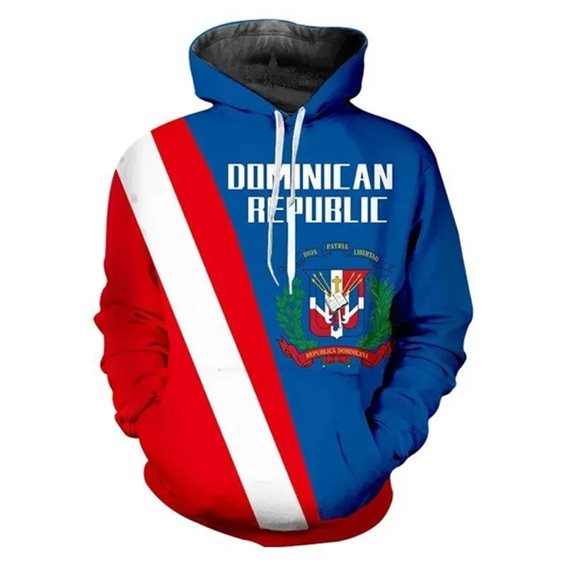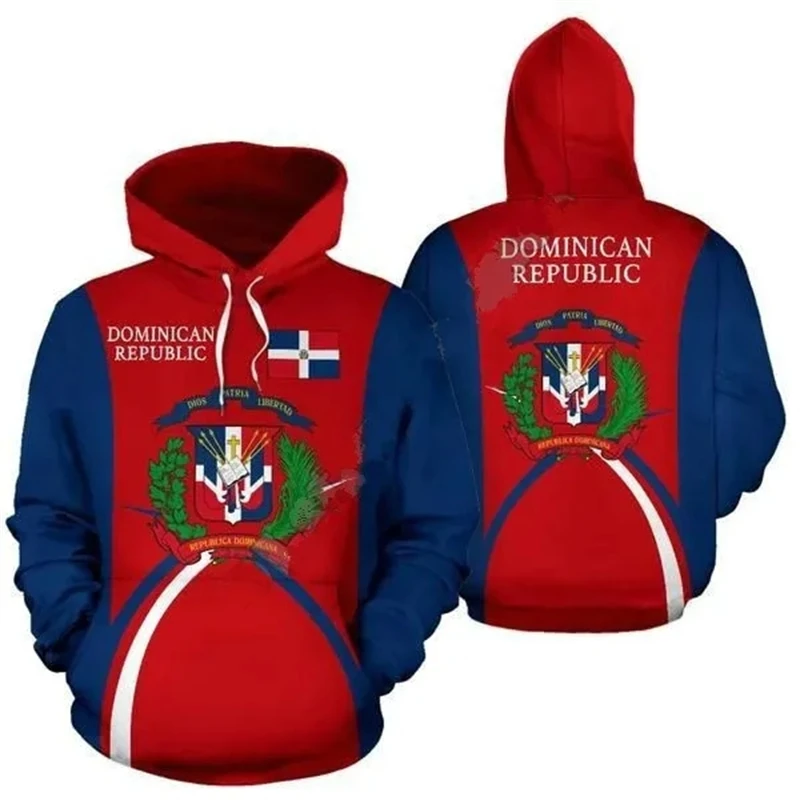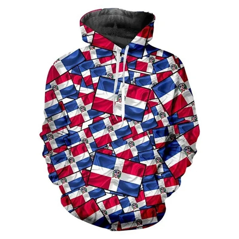 3D Printed Dominican Republic Flag Graphic Hoodies Men’s Women’s Streetwear Pullover Sweatshirt Comfortable Plus Size Hooded Top
