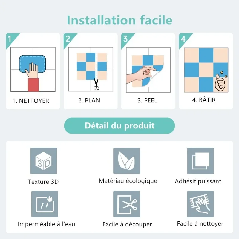 3D Tile Sticker Self-adhesive 3D Wall Panel Peel and Stick Tile Backsplash for Kitchen Waterproof Bathroom Wall Sticker