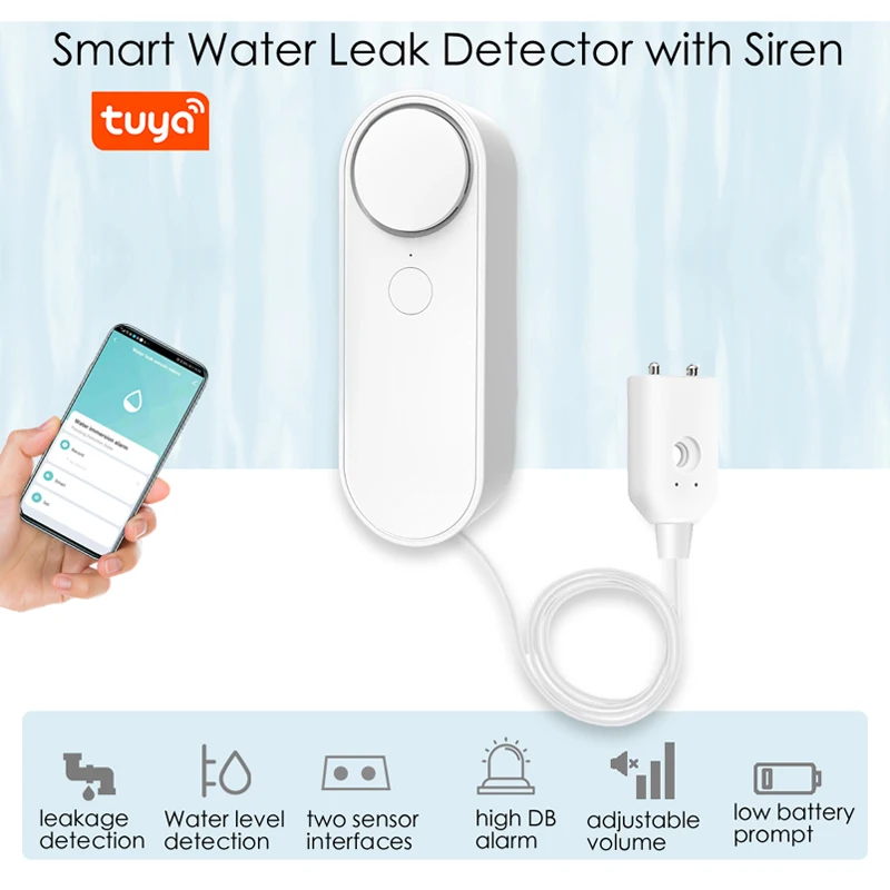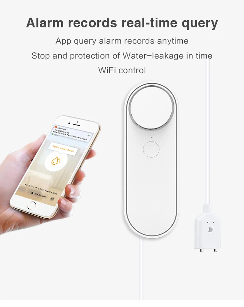3M/5M WiFi Water Leak Detector 90DB Dual Water Flood Sensor Smart Life APP Remote Monitoring Flood Alert Overflow Security