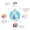 3.5 in 1 Cleaning Brush: 5 replaceable brush head meets all cleansing needs. Two cleaning brushes for facial cleansing, a sponge head is used for makeup, a sanding head helps to remove the calluses, and a silicone head for massaging. Suitable for all types of skin.