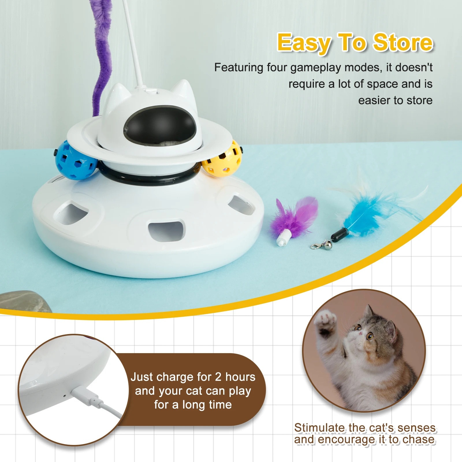 Easy to Store: This cat toy has four ways to play, which is equivalent to preparing four different toys for cats at once. It saves space by eliminating the need to purchase a large number of separate toys and makes storage more convenient
