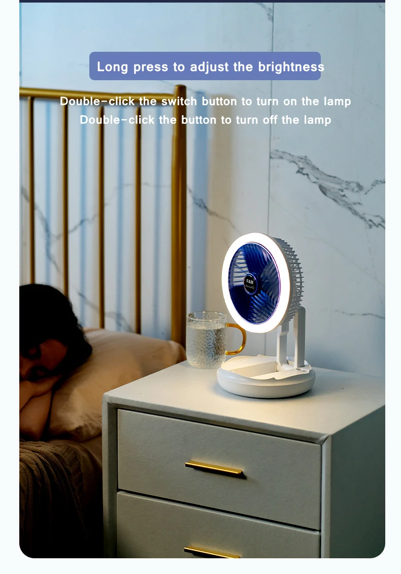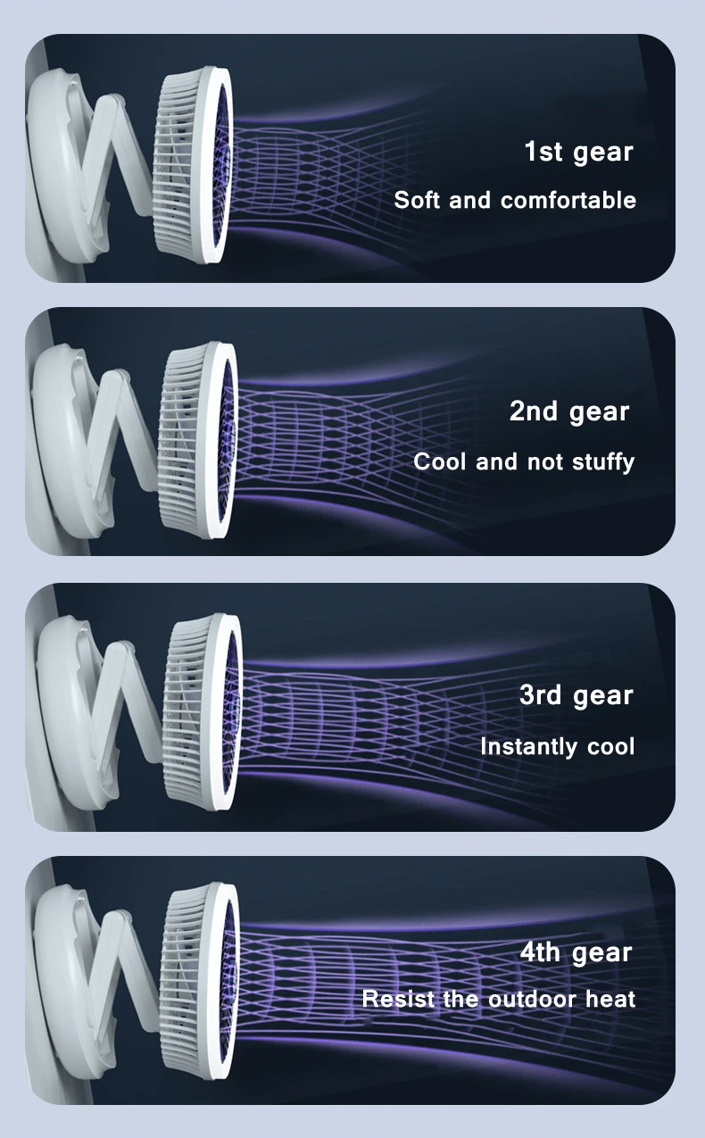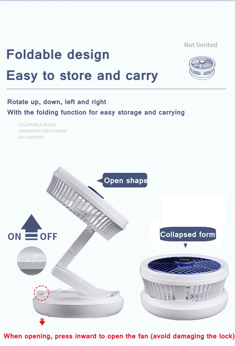 Features: multifunction fan,wall-mounted,ceiling,standing and folding,with night lamp and pen holder functions,suitable for bedroom,office,study,dormitory,4 gears wind adjustable,large capacity battery for long endurance,brushless motor,silent and high wind blowing.