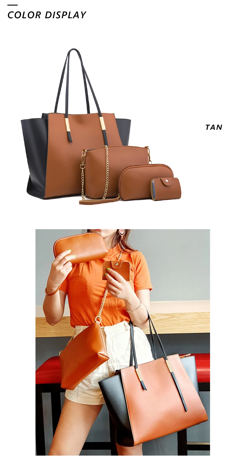4 PCS Bags Set Women’s PU Vegan Leather Luxury Design Tote Trapeze Shoulder Bag Chain Crossbody Wrislet Clutch Cardholders Daily