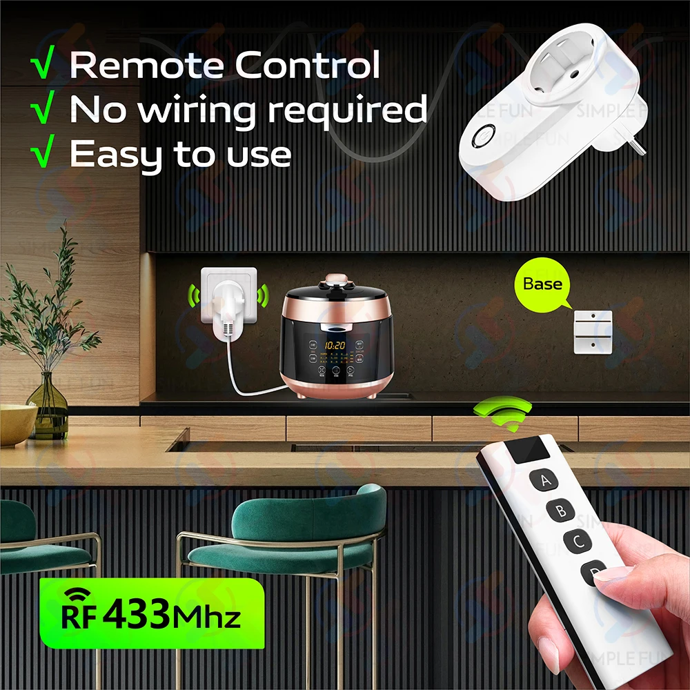 –RF 433MHZ Remote Control,Conveniently control appliances from sockets.