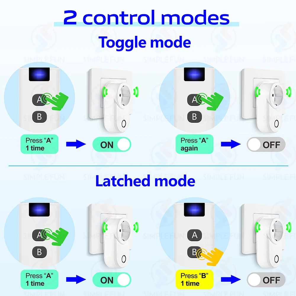 •Toggle mode:Press the A button to turn the socket on, press the A button again to turn the socket off.