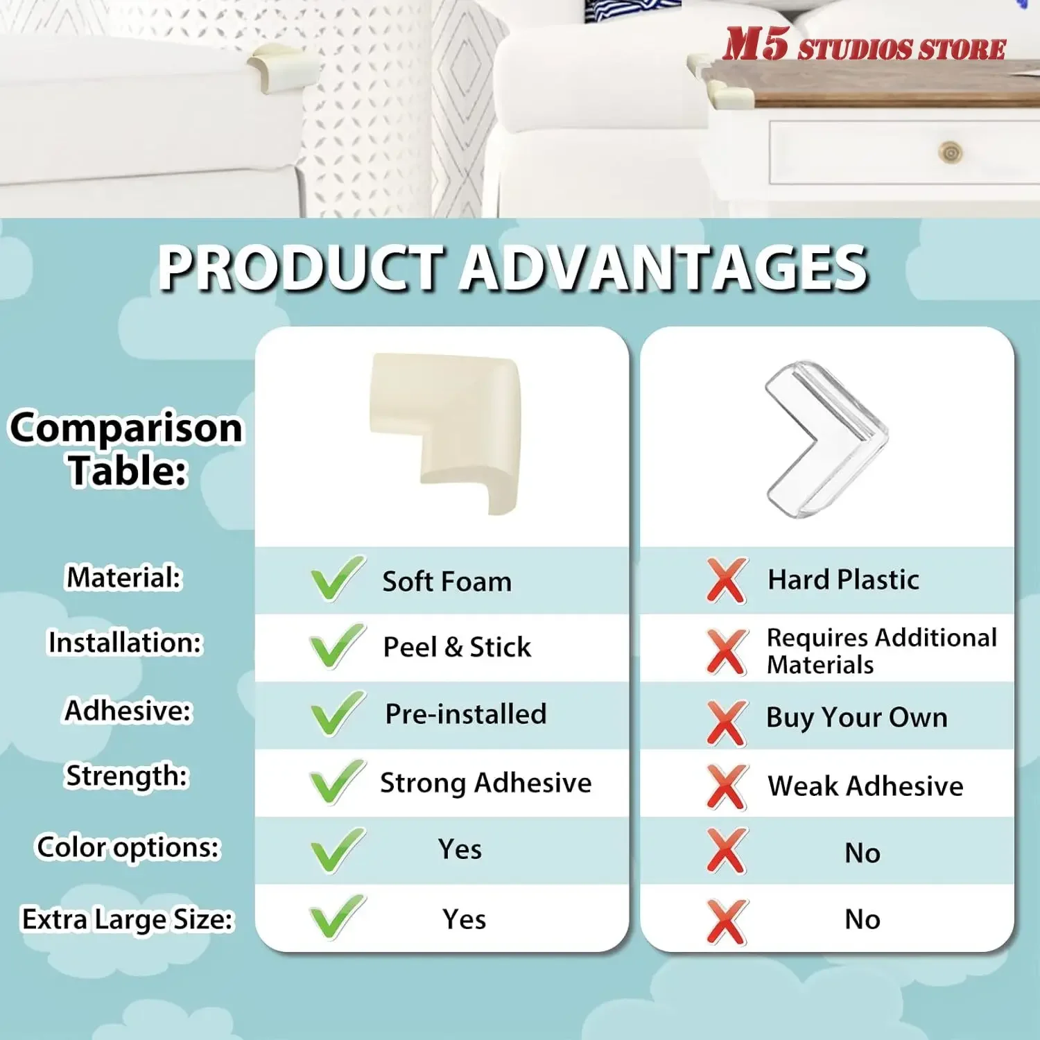- Wide Application:Corner guards can be used for sharp edges of tables, chairs, furniture and fireplaces, and any hard corner that may cause accidental injuries to our children. Give babies a bigger space to play.