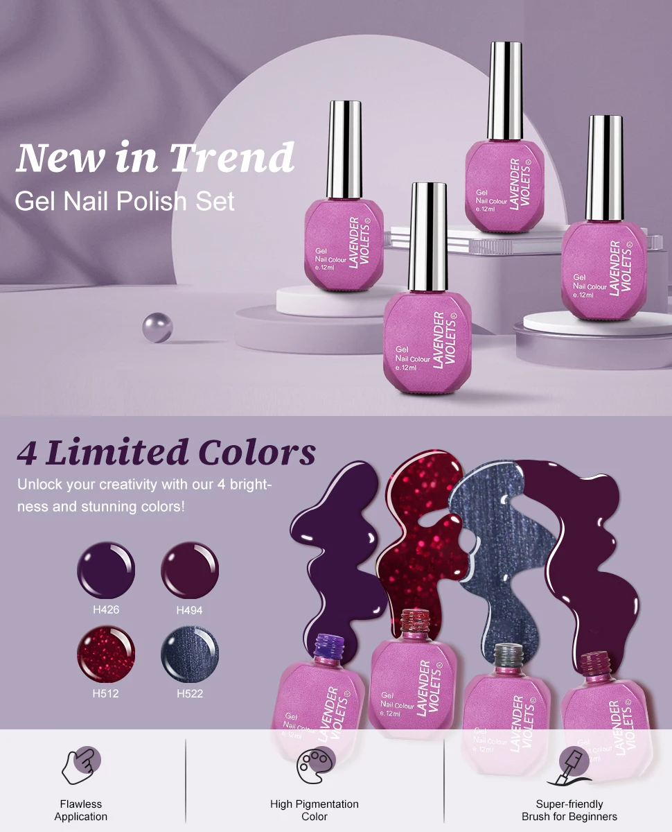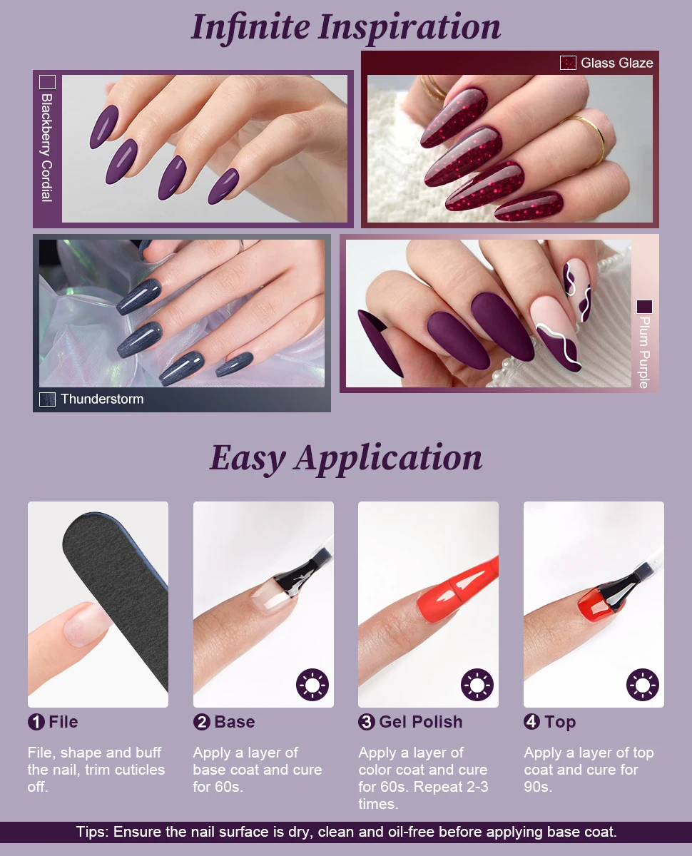 4pcs 12ml Gel Nail Polish Kit, Dark Purple Red Shimmer Gel Nail Kit Soak Off UV LED Light Cured Nail Art Design Gifts for Women
