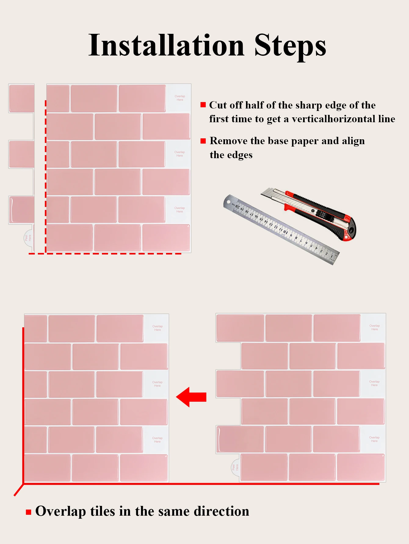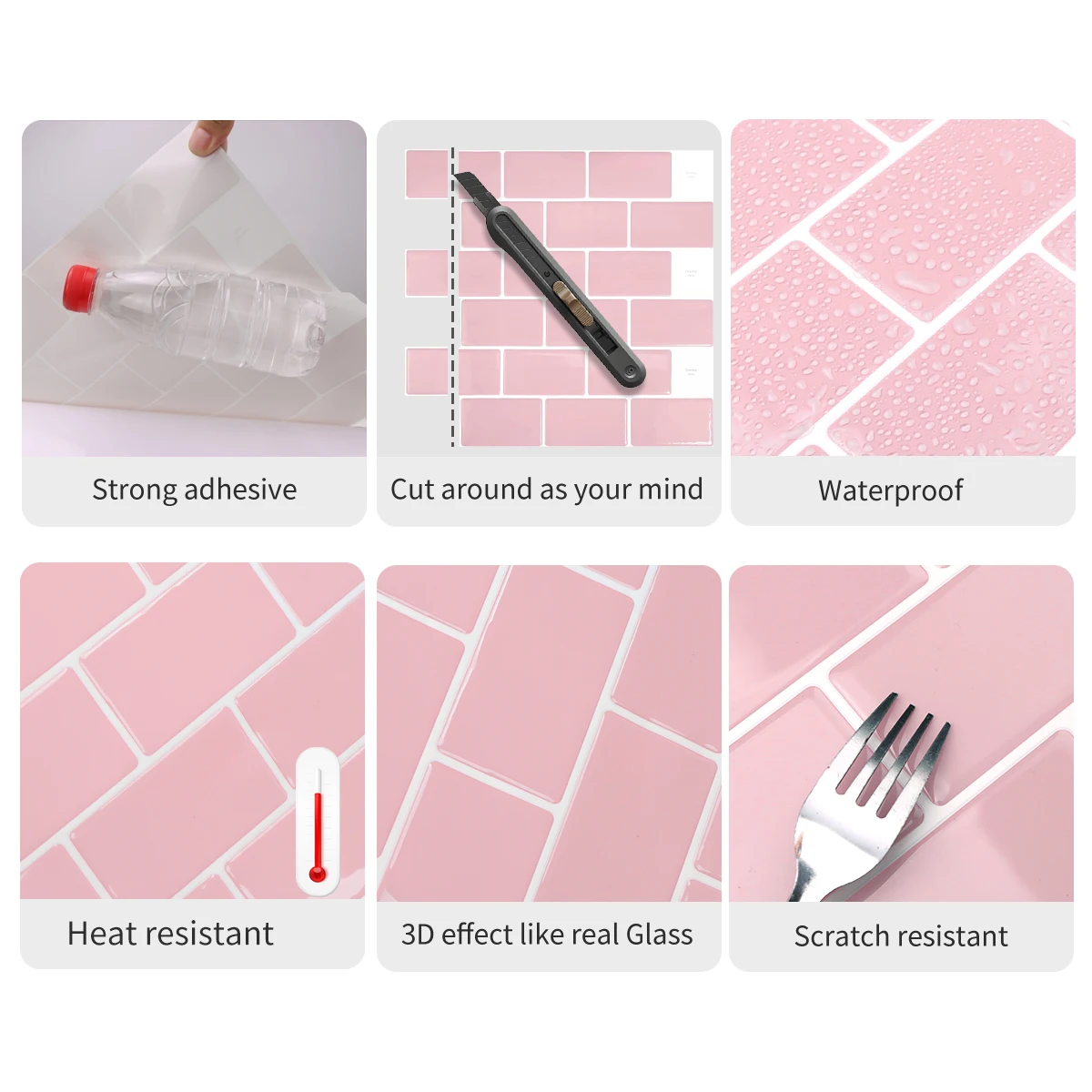 Las baldosas se pueden instalar fácilmente directamente sobre los paneles existentes o sobre una superficie lisa. Especialmente diseñado para salpicaduras de cocina y salpicaduras de baño, las baldosas son resistentes al calor de las encimeras de la estufa y la humedad de los baños.