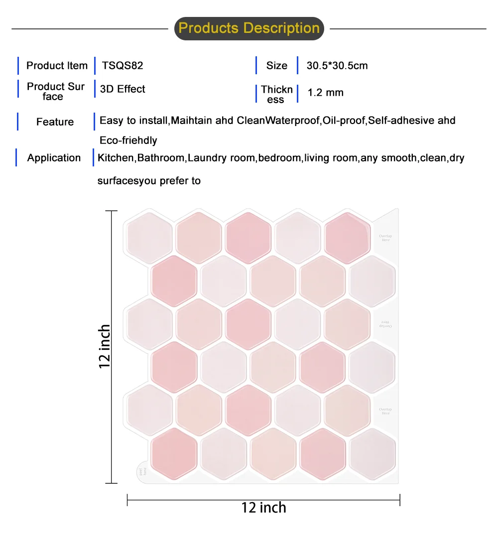 The tiles can be easily installed directly over existing panels or smooth surface. Especially designed for kitchen backsplash and bathroom backsplash, the tiles are resistant to the heat of stove tops and the humidity of bathrooms.