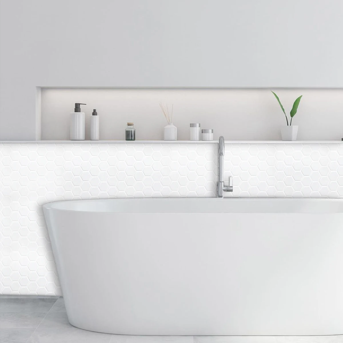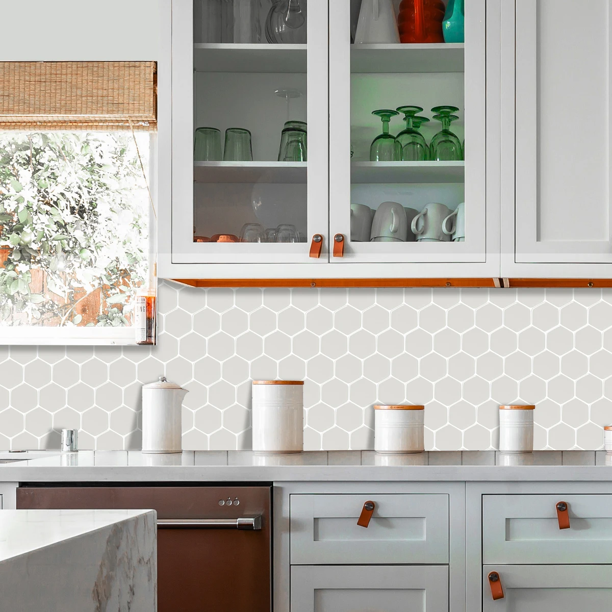 The peel and stick tile is an easy DIY way to refresh your kitchen and bathroom backsplash, and indoor environment.