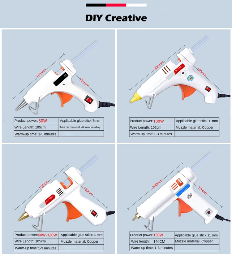 50W/100W/60-120W/150W Hot Melt Glue Gun 10 PCS Hot Melt Adhesive Stick Dual Power For Home Repairs, Arts and Crafts DIY Sealing