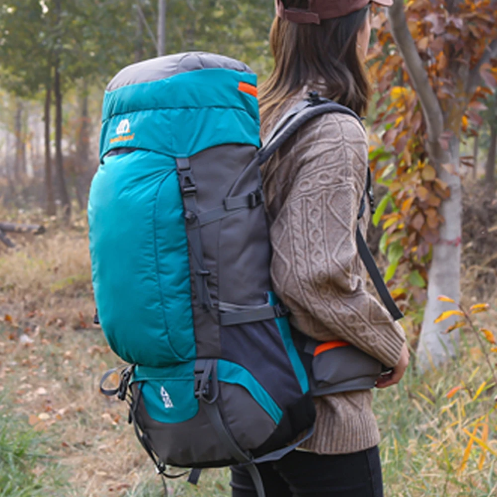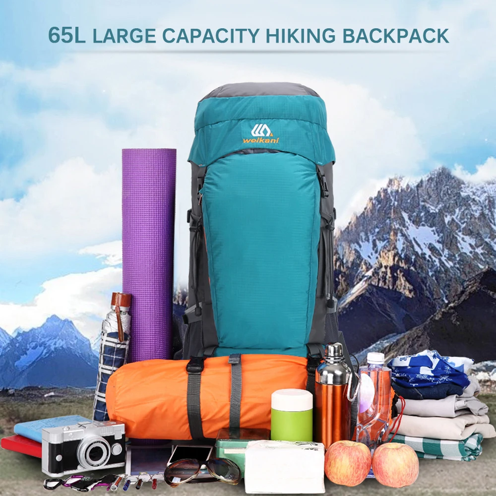 This backpack with 65L large capacity that includes plenty of pockets and exterior attachment straps to provide spacious room for your belongings. It is perfect for camping, hiking, traveling, etc.