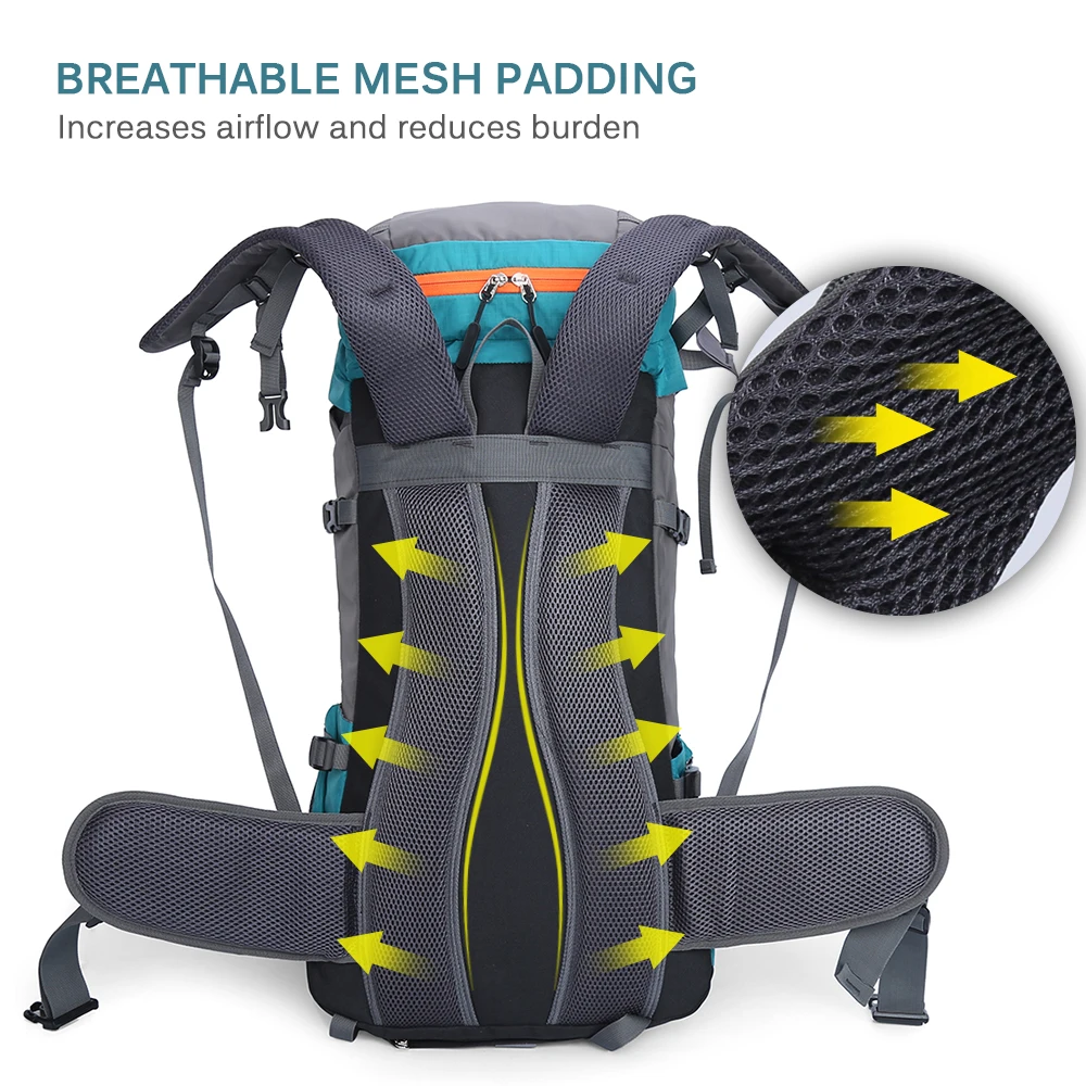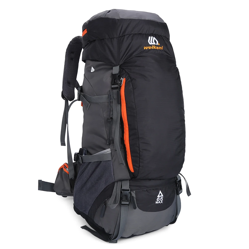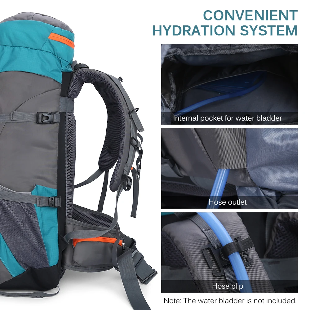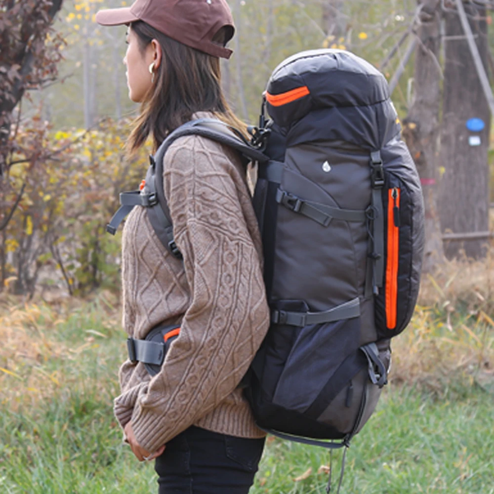 65L Large Capacity: Includes main pocket, top pocket, side pockets, front pocket, waist pockets, bottom pocket, and exterior attachment straps, spacious enough for your trip.