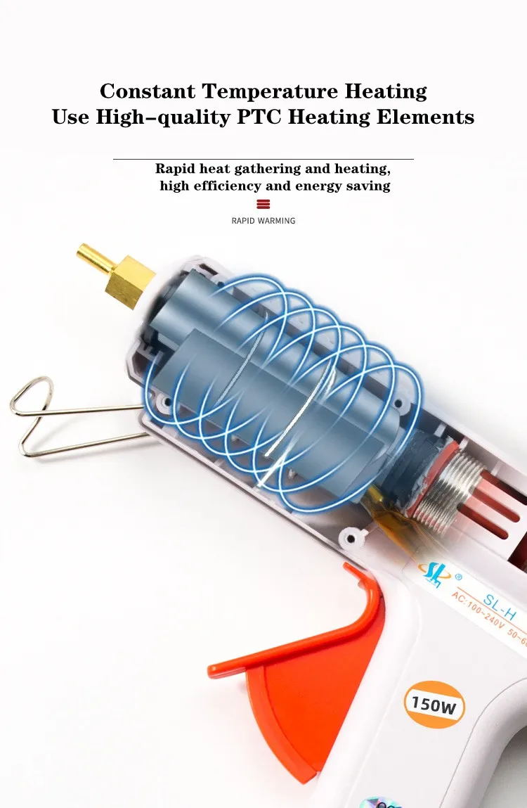 80W/150W Hot Melt Glue Gun Smart Adjustable Temperature Copper Nozzle Heater Muzzle Diameter 11mm Industrial Guns Repair Tool