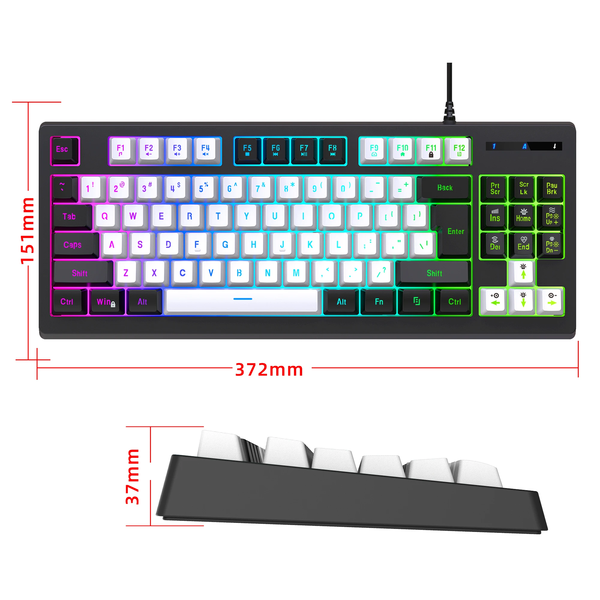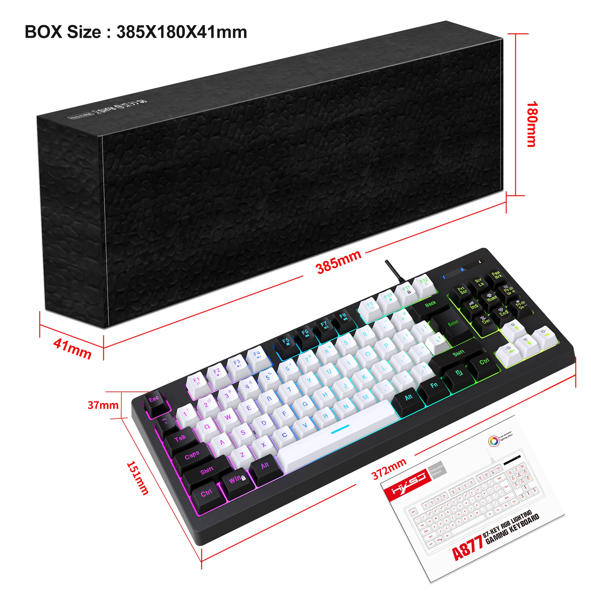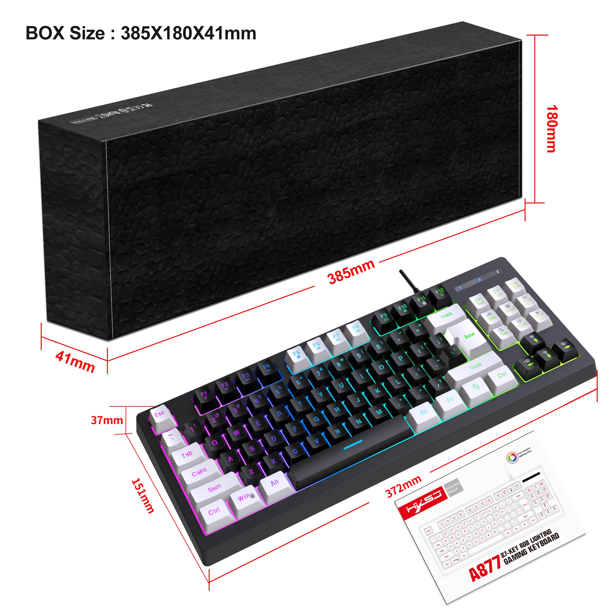 1. 87-key compact design: The A877 keyboard features a compact layout with 87 keys, making it more convenient to carry and use, saving desktop space, and suitable for various occasions.