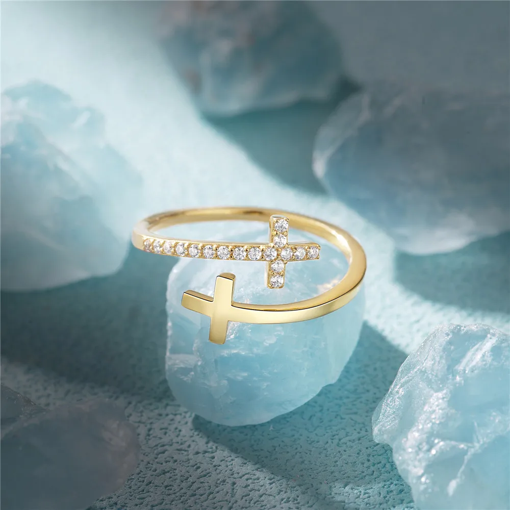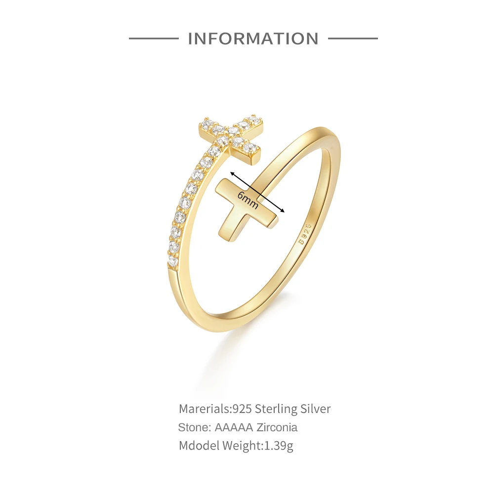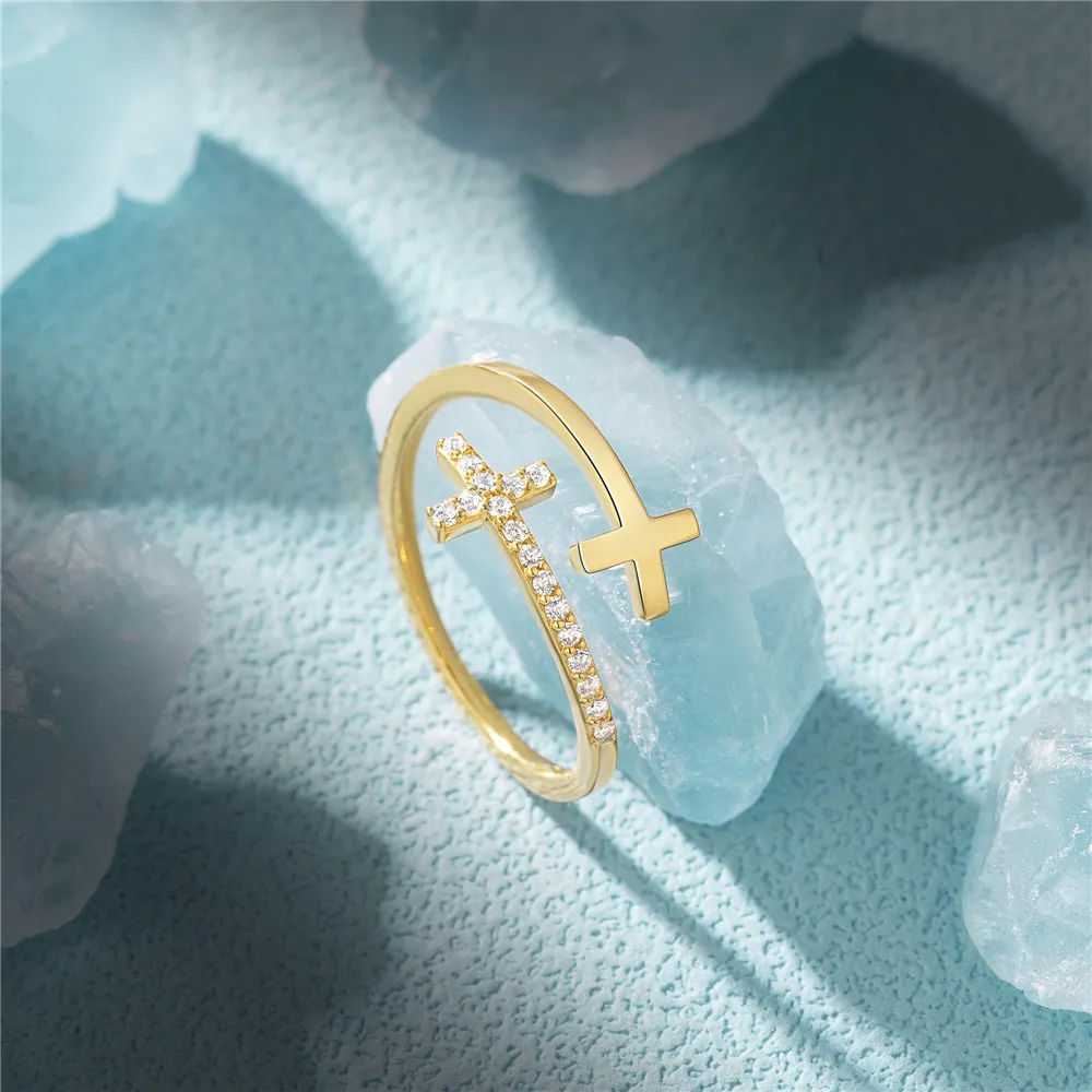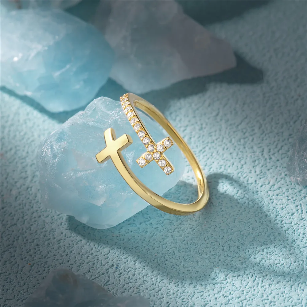925 Sterling Silver Double Cross Shine Crystal Rings For Women Men Adjustable Party Wedding Engagement Jewelry bague femme