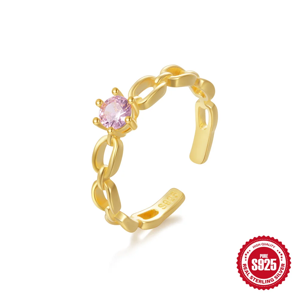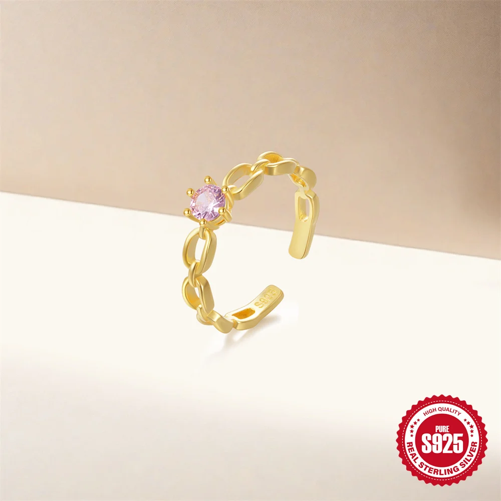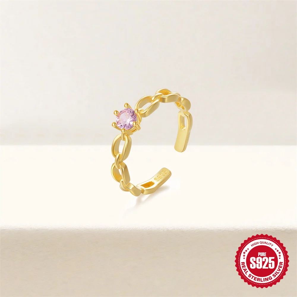 925 Sterling Silver Women’s Wedding Ring Colorful Zircon Small Fresh Fried Dough Twists Shape Adjustable Boutique Jewelry Gift