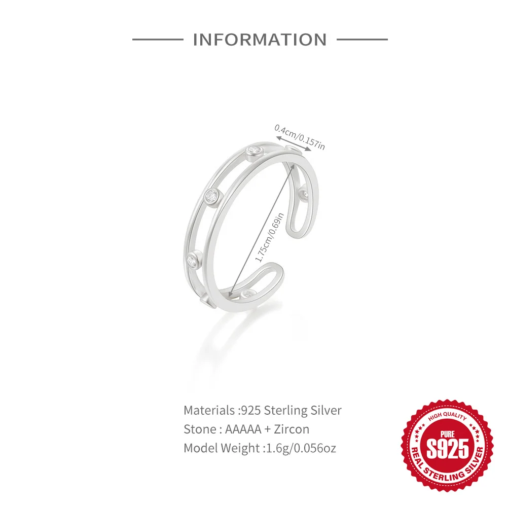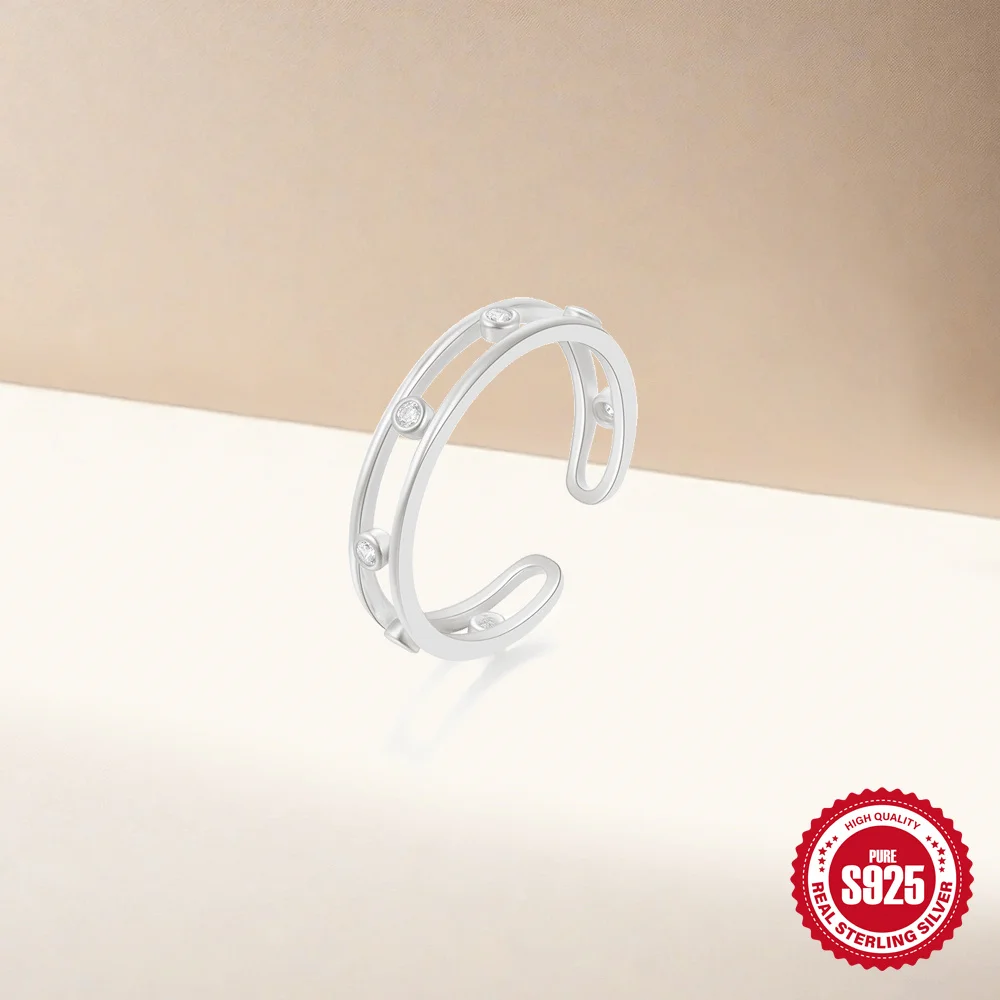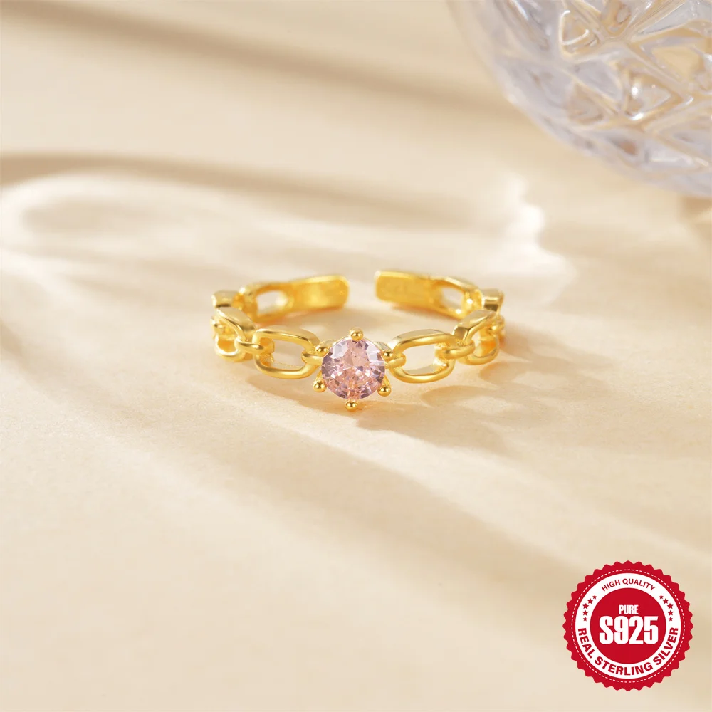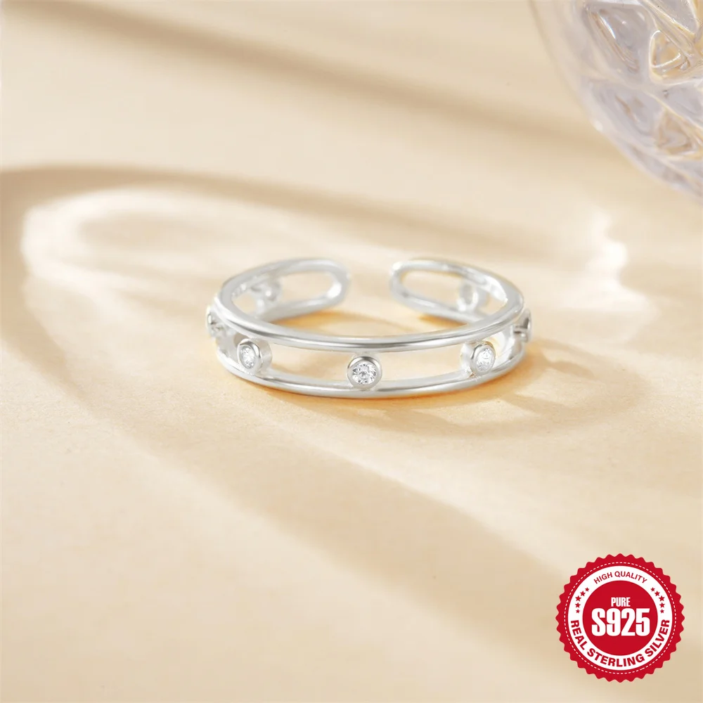 925 Sterling Silver Women’s Wedding Ring Colorful Zircon Small Fresh Fried Dough Twists Shape Adjustable Boutique Jewelry Gift