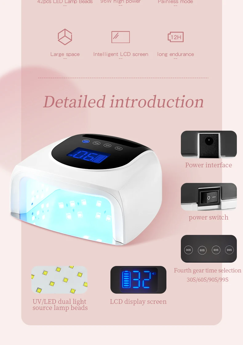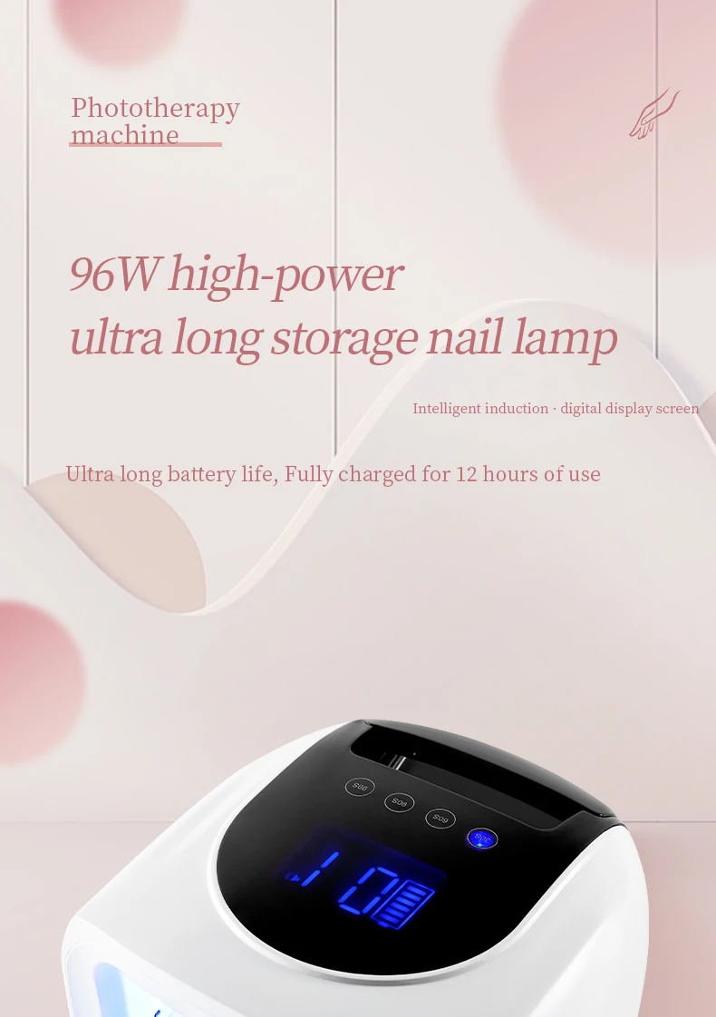 96W Magnetic Removable Bottom Nail lamp Cordless Gel Polish Dryer Manicure Machine UV LED light for Nails Portable Nail Lamp
