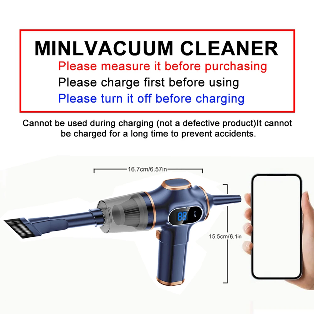 1. This cordless vacuum cleaner has a super suction power of 98000Pa, with quadruple high-efficiency filtration and multiple sets of brush heads for cleaning. Makes it easy to clean your home or car.