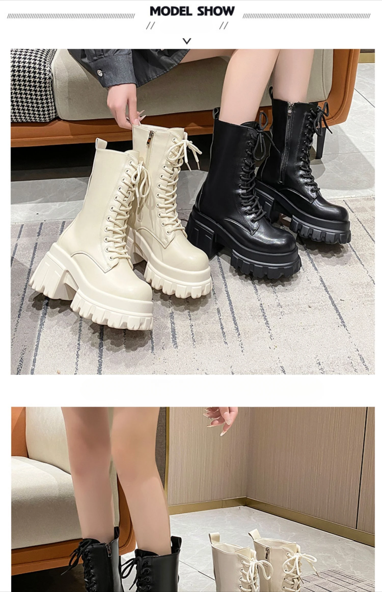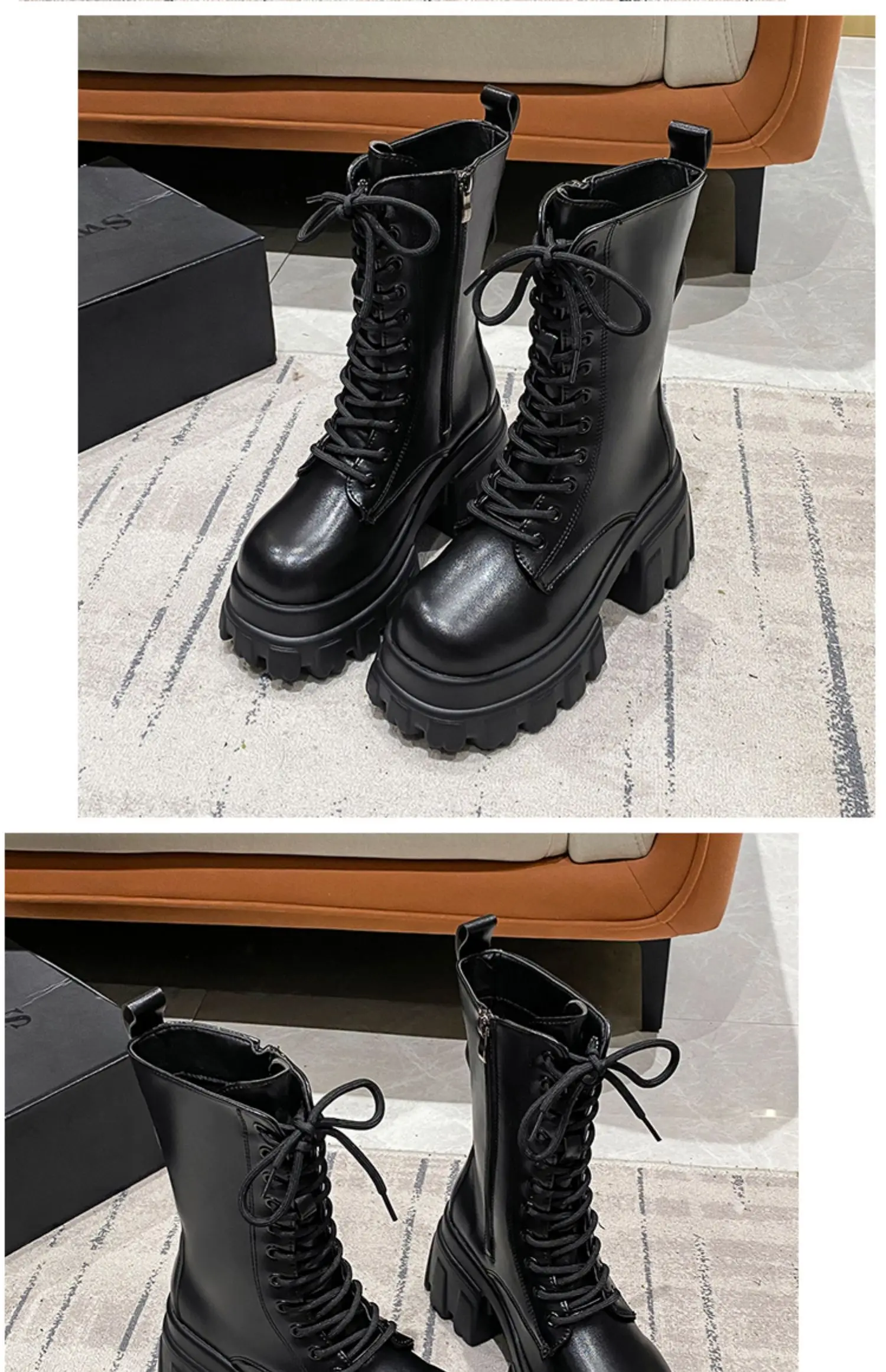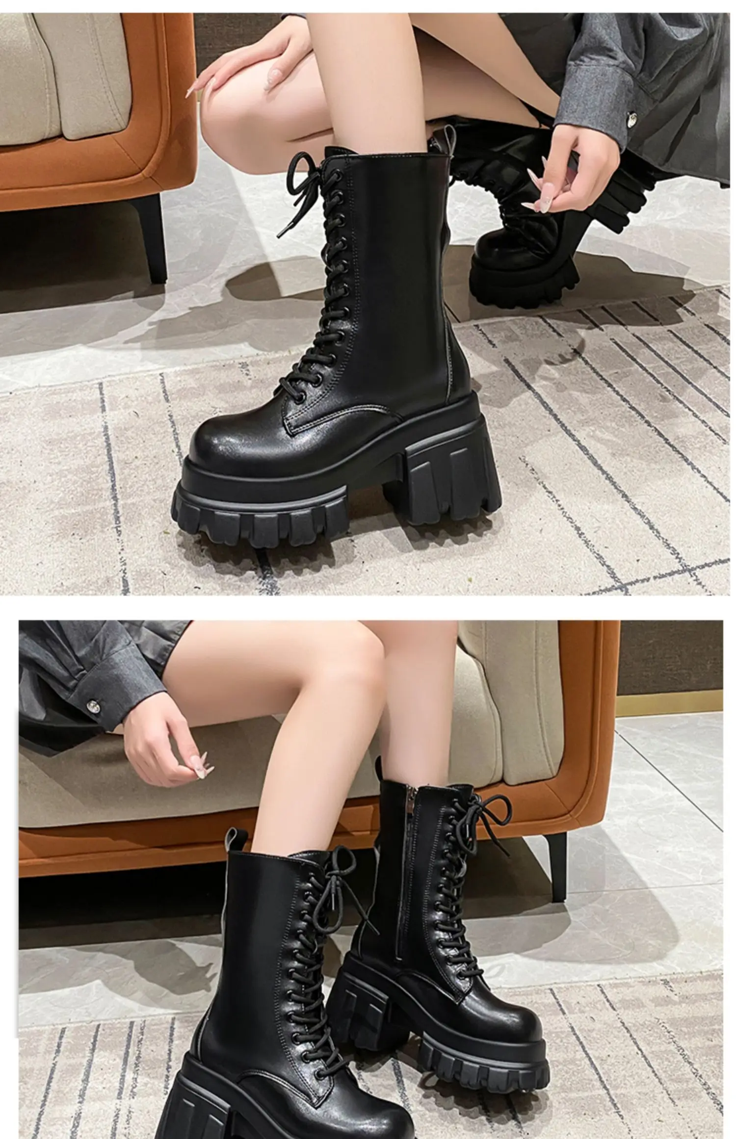 9CM Chunky Platform Ankle Boots Women 2025 New Autumn Winter Motorcycle Boots Woman Thick Bottom Non Slip Leather Combat Boots