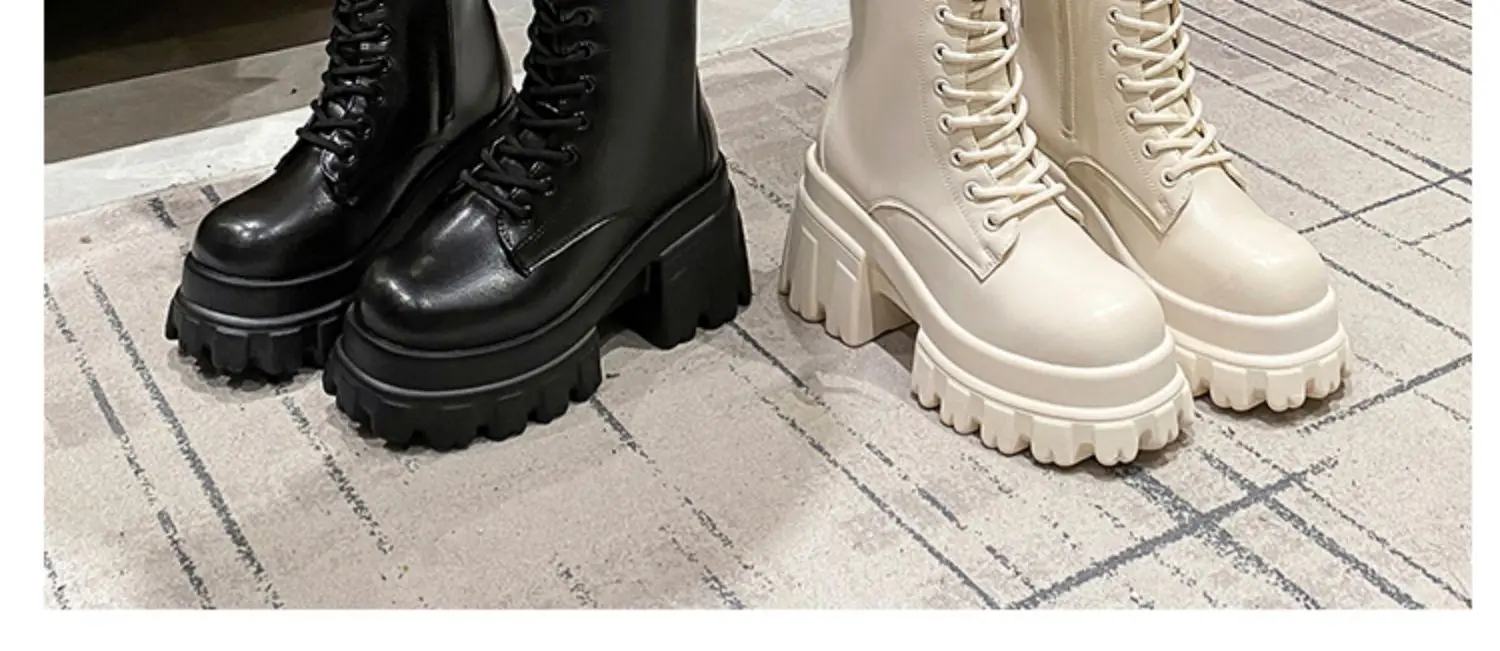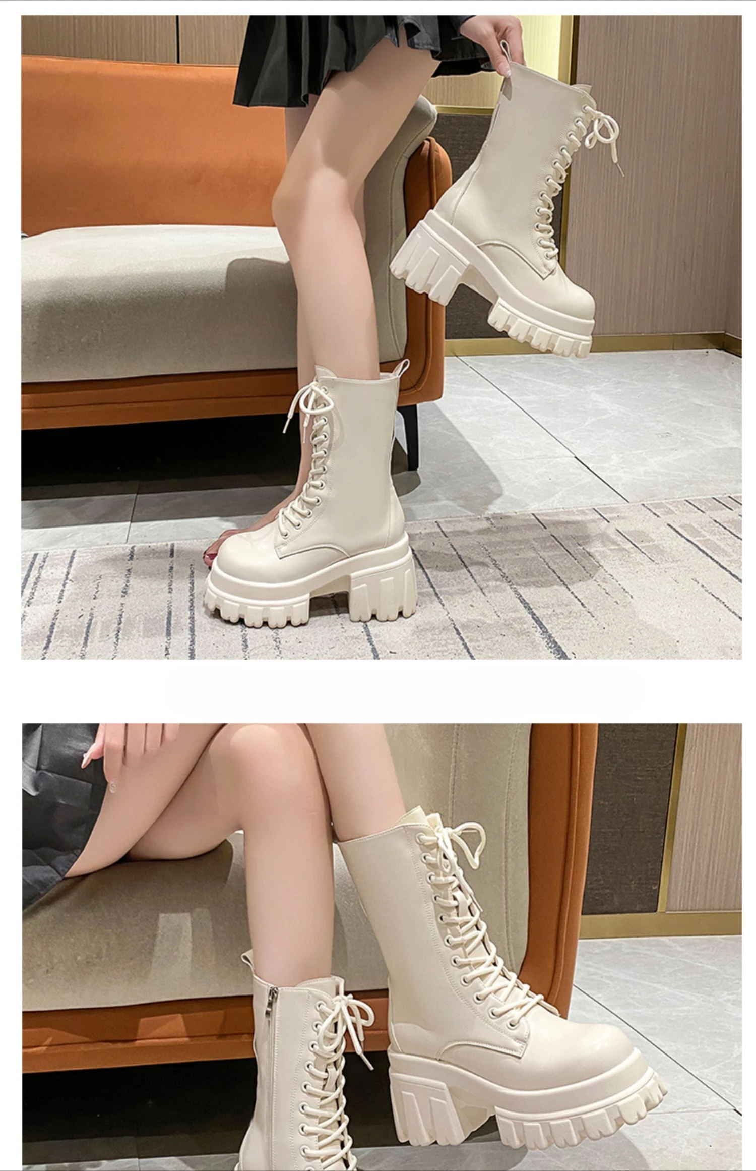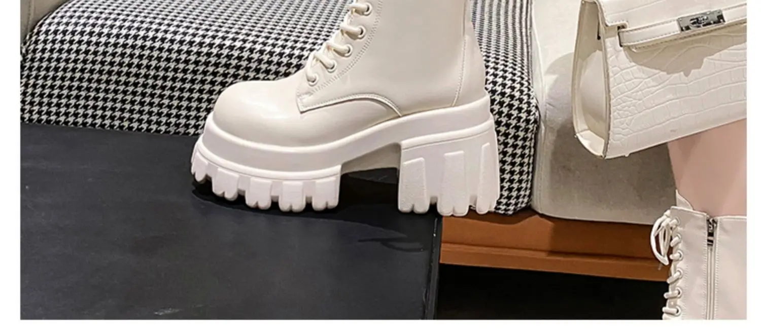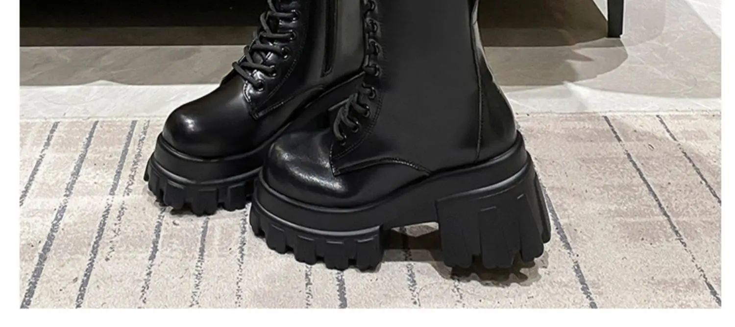 9CM Chunky Platform Ankle Boots Women 2025 New Autumn Winter Motorcycle Boots Woman Thick Bottom Non Slip Leather Combat Boots