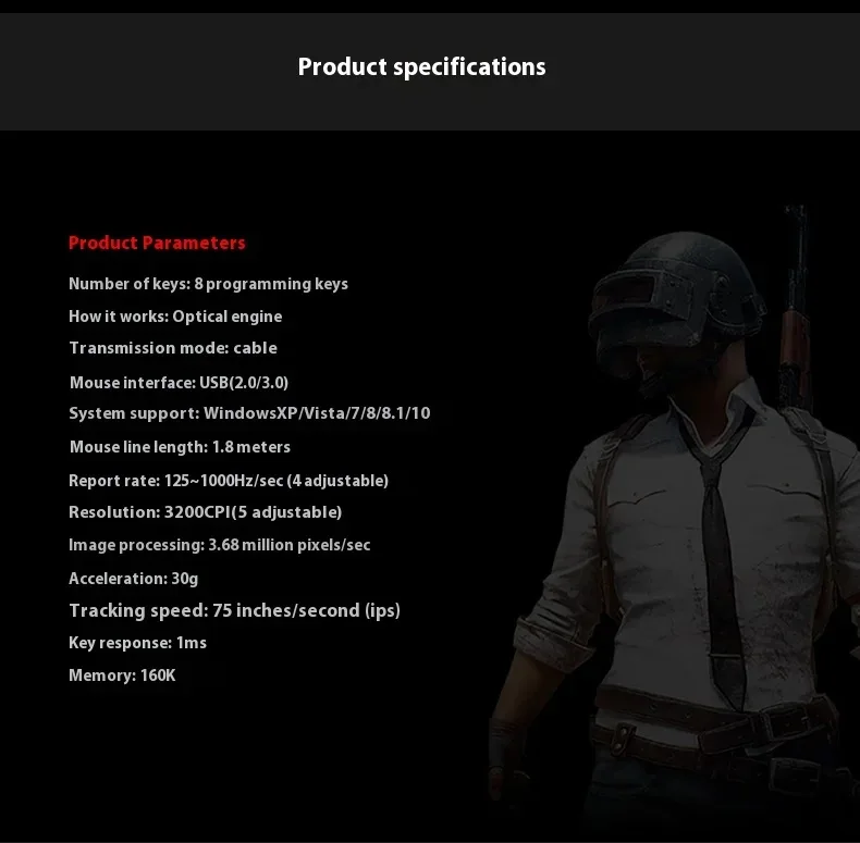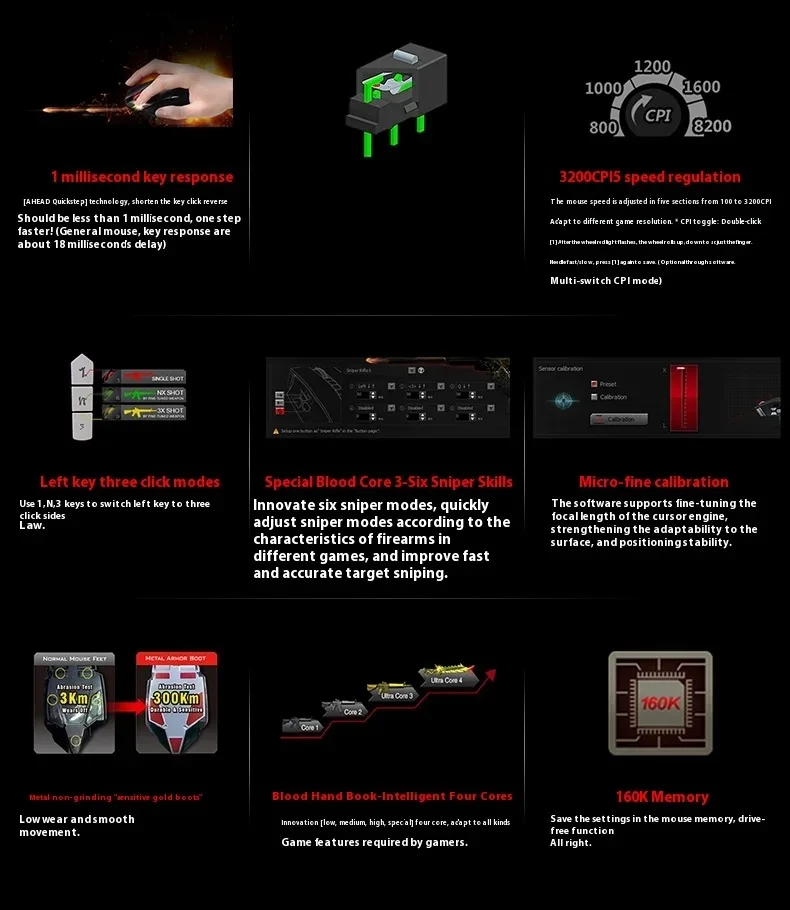 resolving power: 3200 CPI (adjustable in 5 segments)