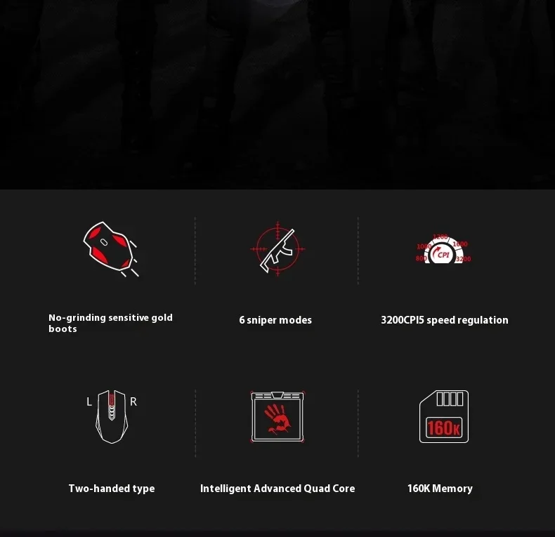 A4TECh Bloody V5m Mouse Wired Macros Programming 3200dpi Gaming Notebook Mouse Both Hands E-Sport Gaming Player Office Boys Gift