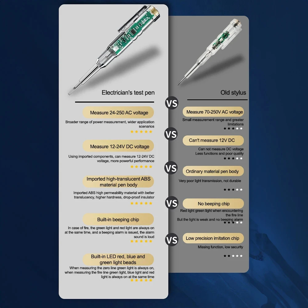 AC24-250V Voltage Tester Pen Non-contact Induction Digital Power Detector Pencil Intelligent Electric Screwdriver Probe Circuit