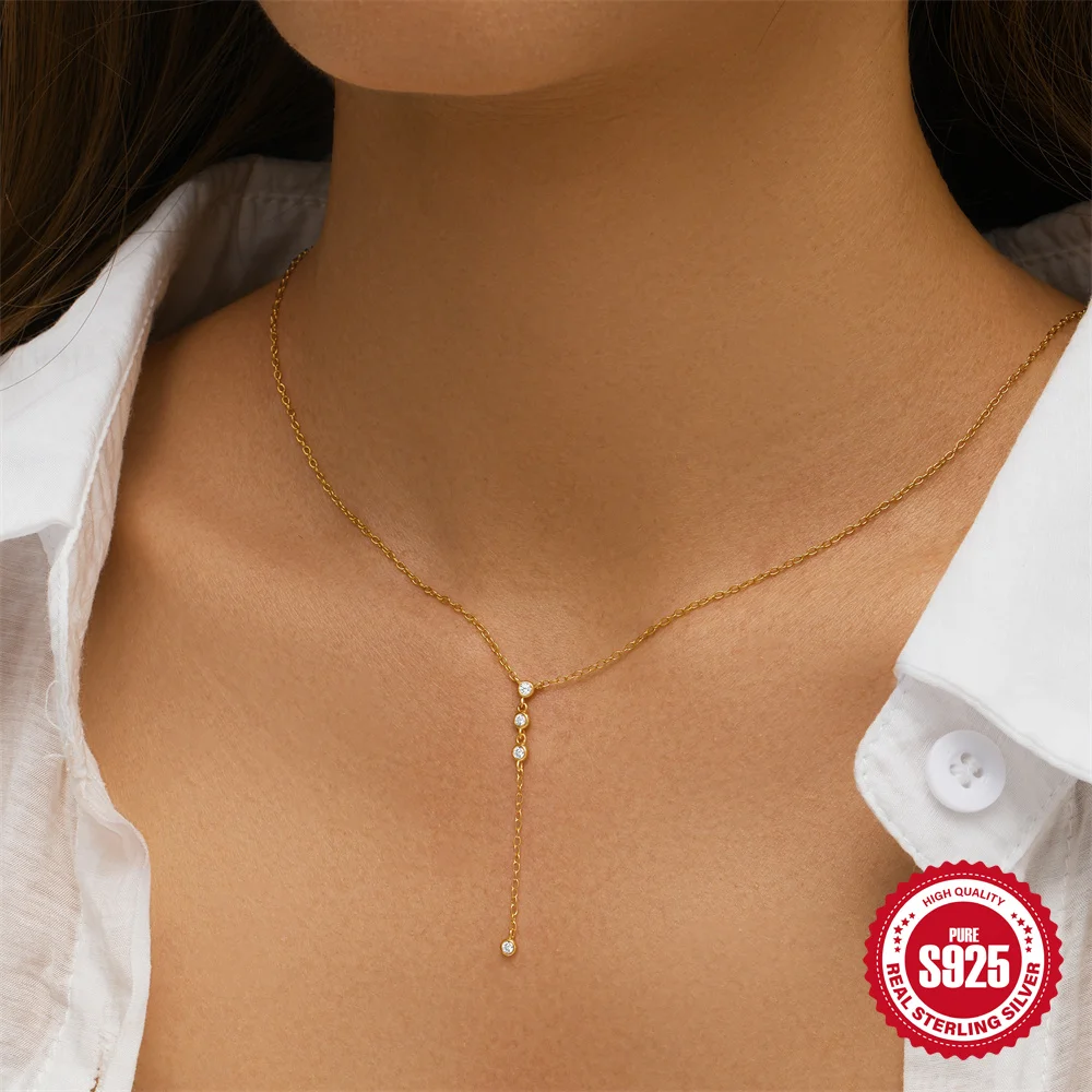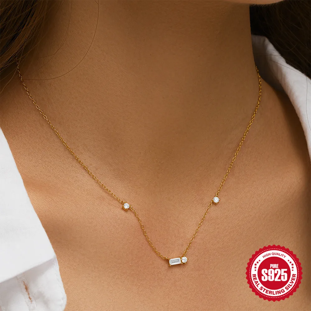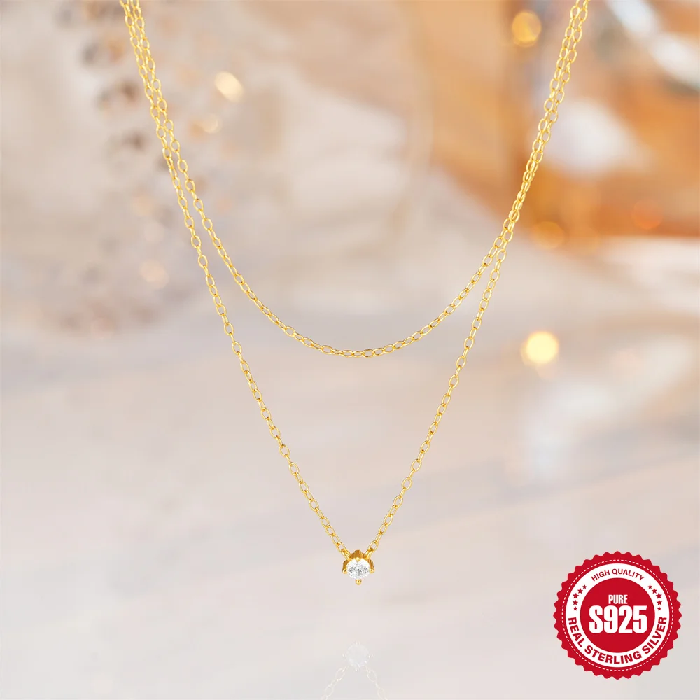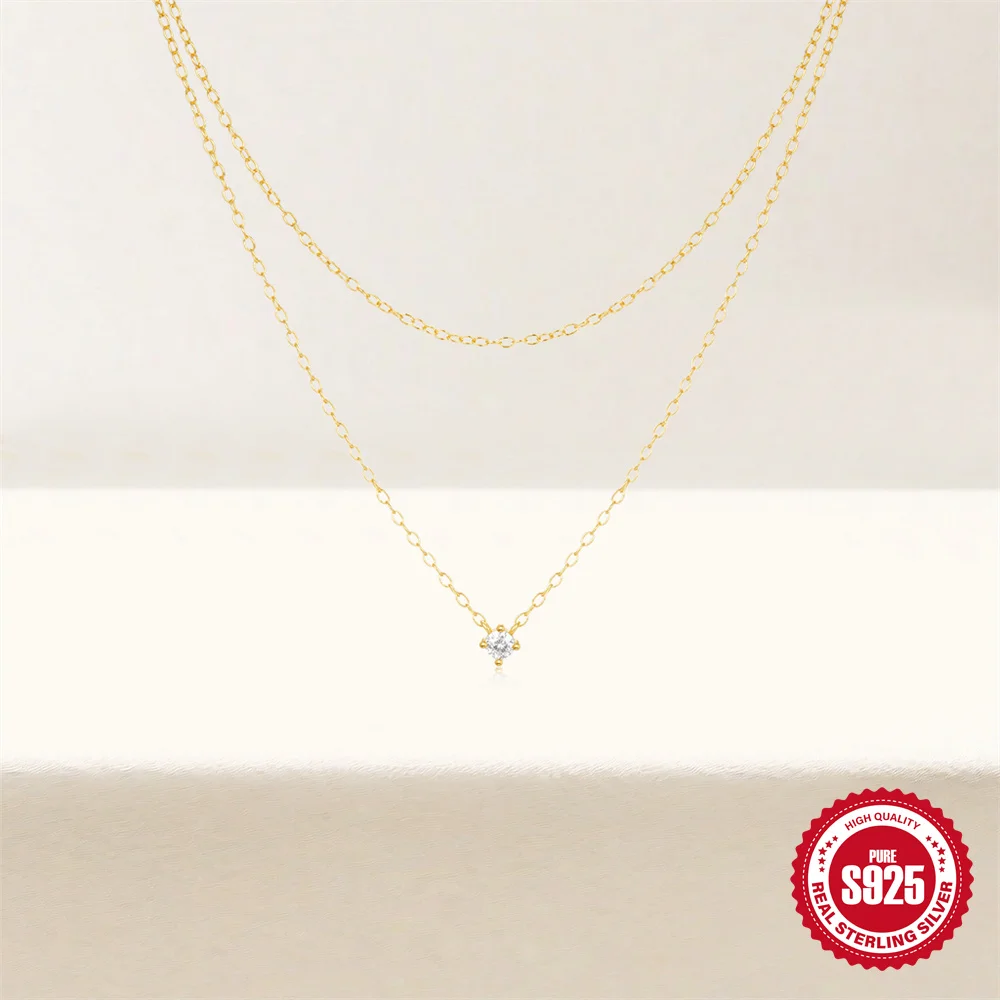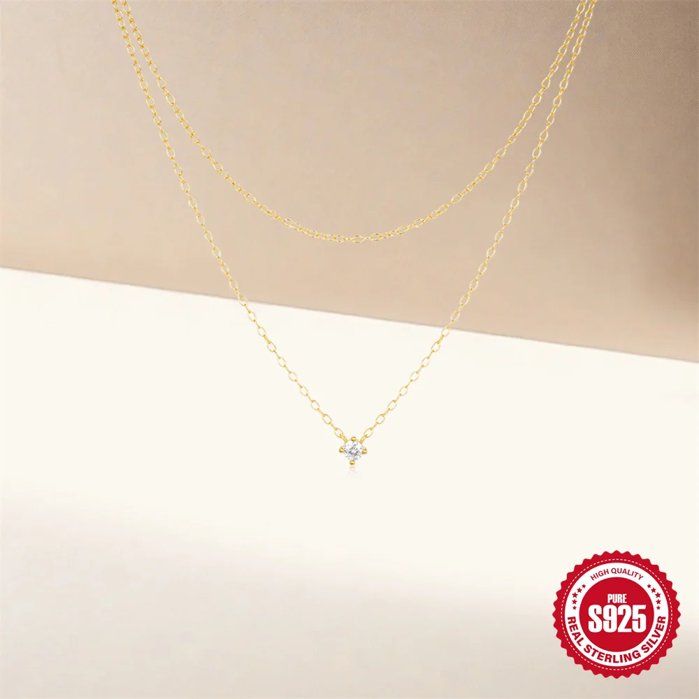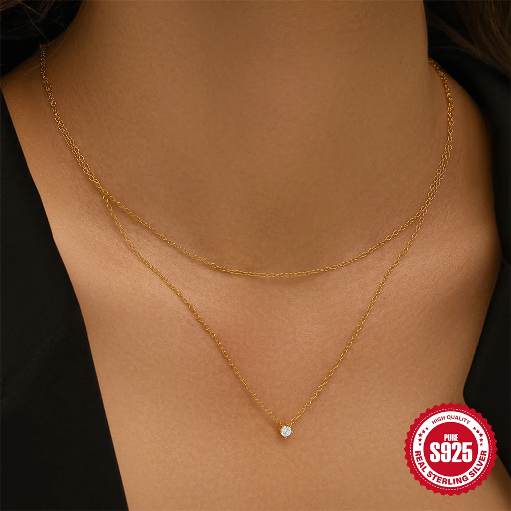 Aide 925 Silver Simple Layering Necklace For Women 18K Gold Plated Zircon Delicate Necklace ins Jewelry Wedding Party Gifts