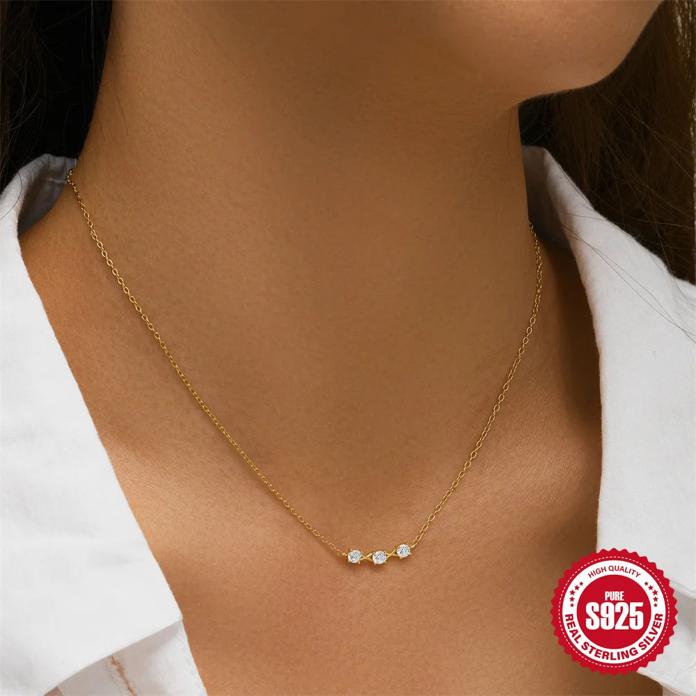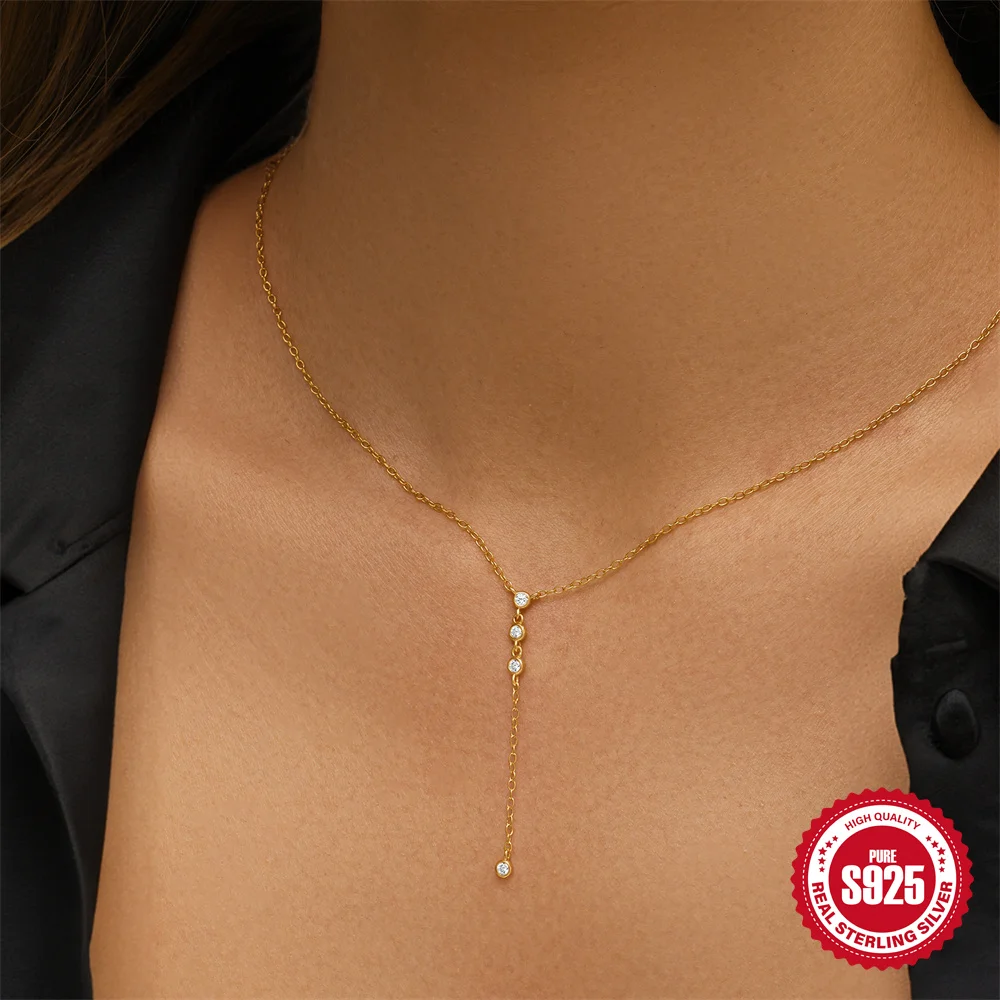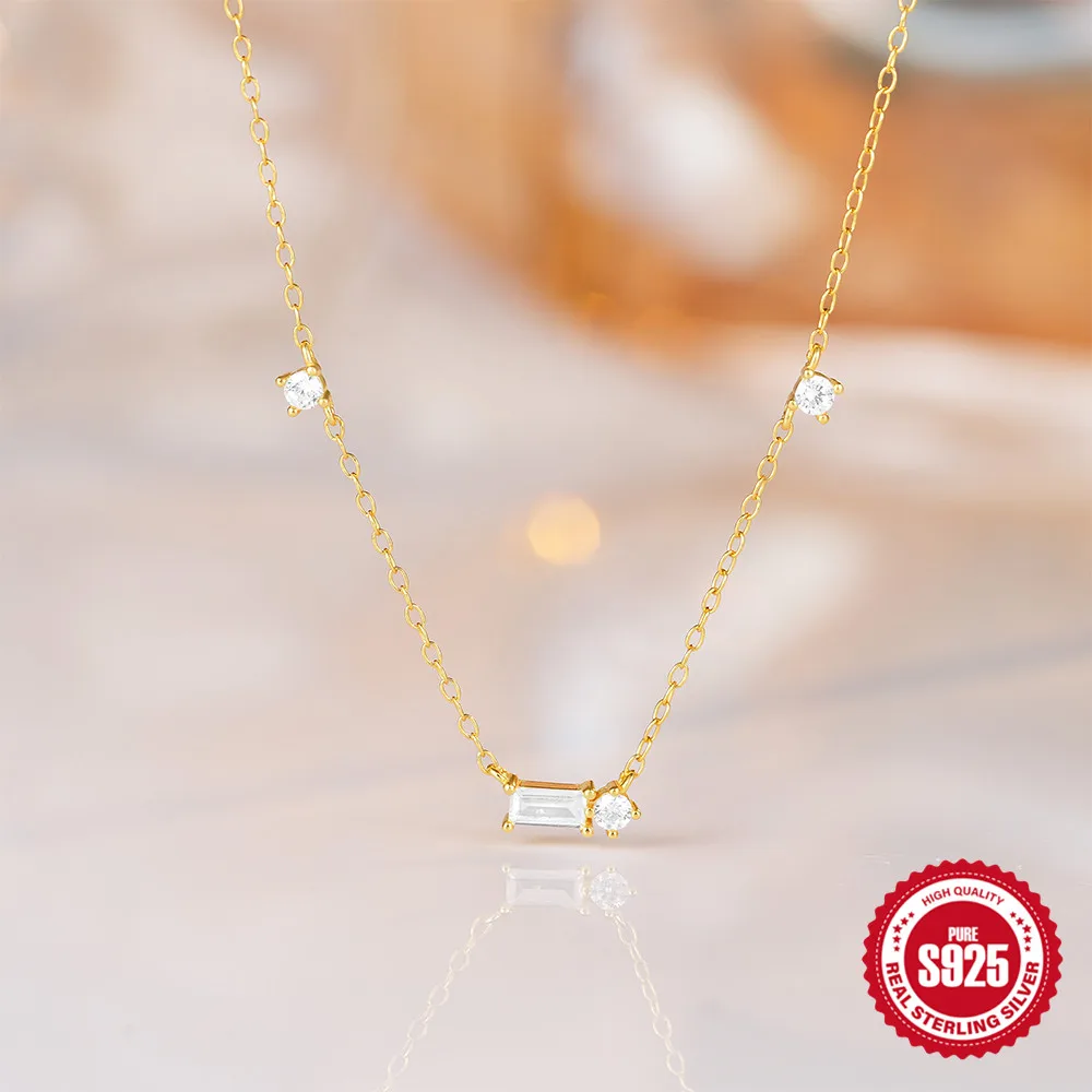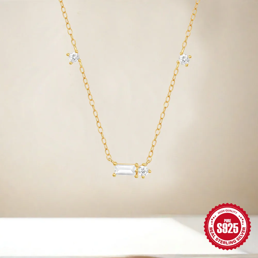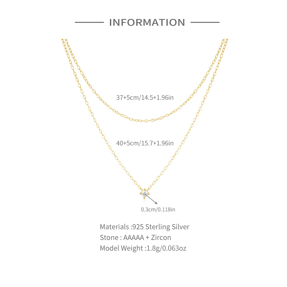 Aide 925 Silver Simple Layering Necklace For Women 18K Gold Plated Zircon Delicate Necklace ins Jewelry Wedding Party Gifts