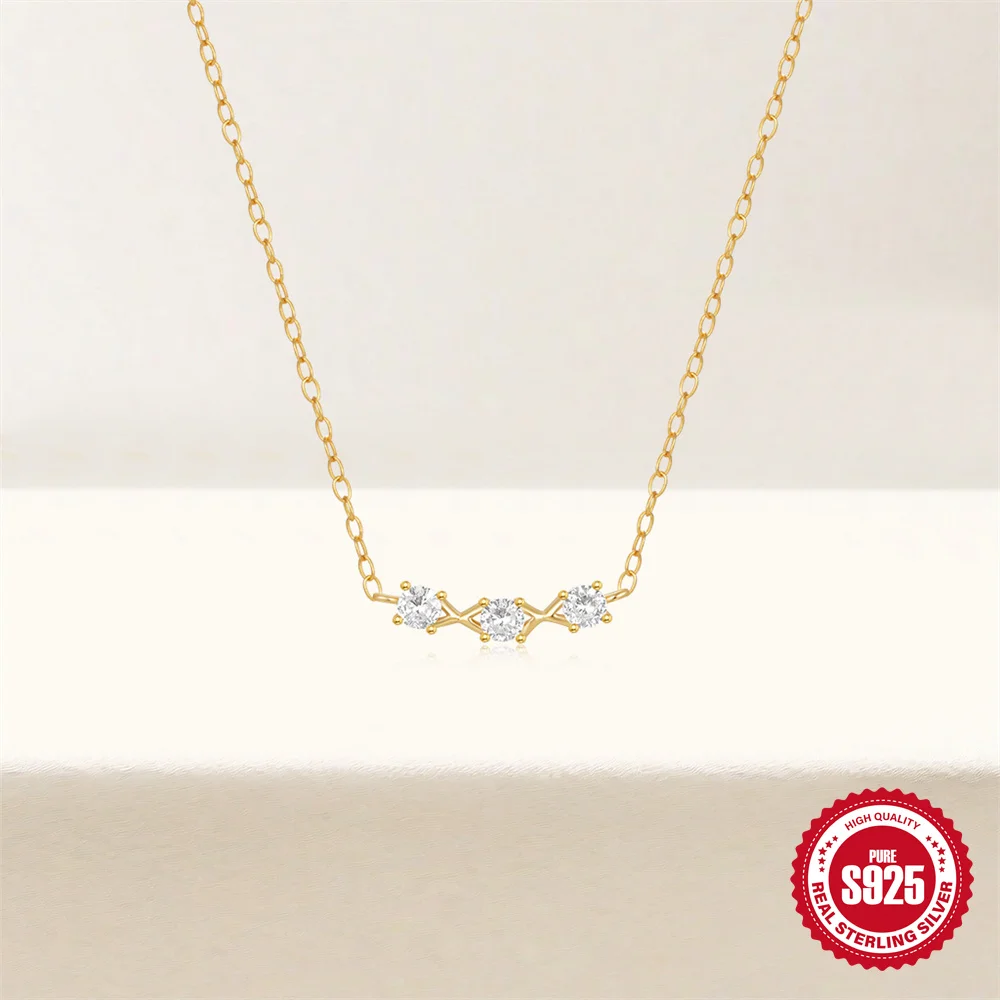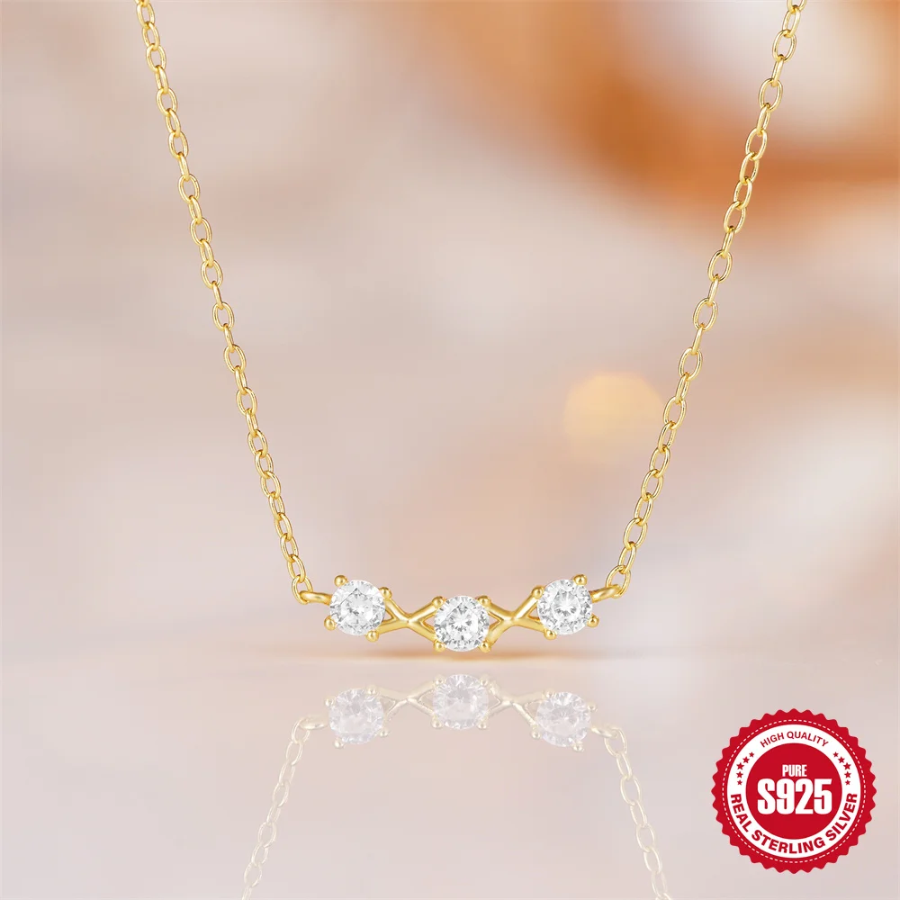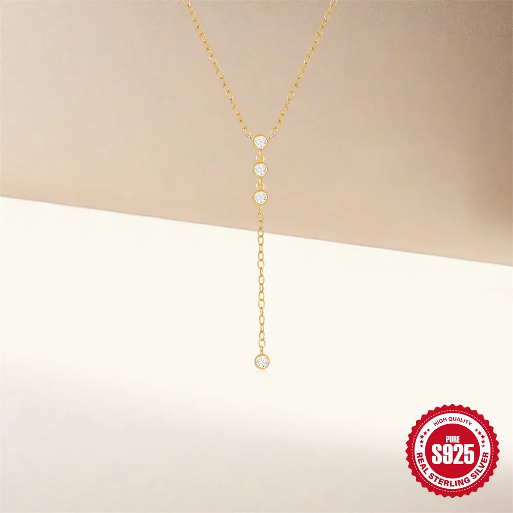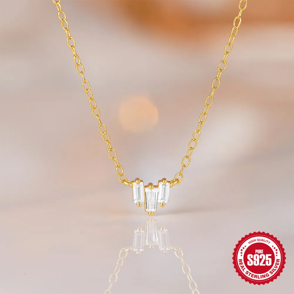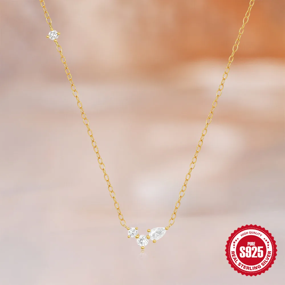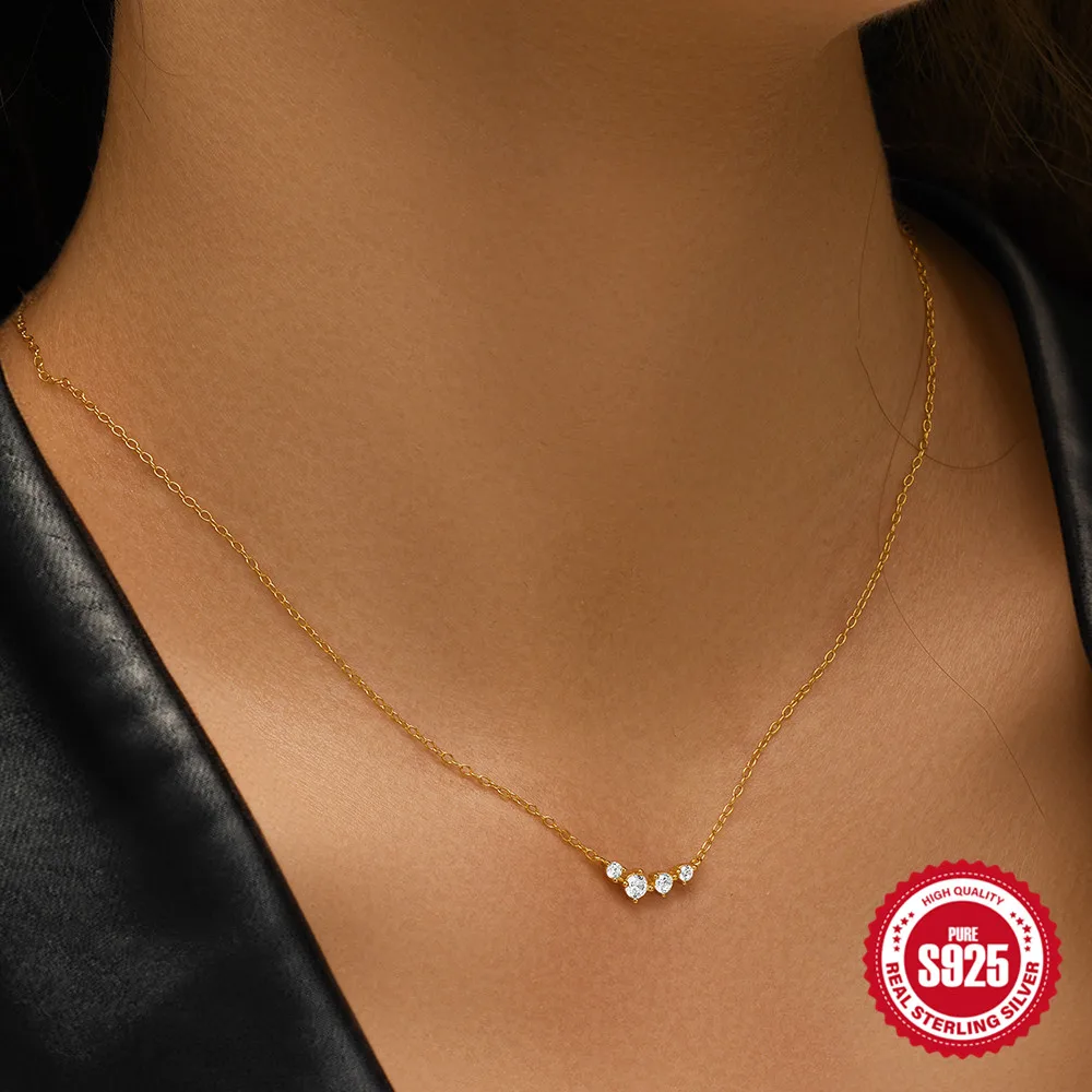 Aide 925 Silver Simple Layering Necklace For Women 18K Gold Plated Zircon Delicate Necklace ins Jewelry Wedding Party Gifts