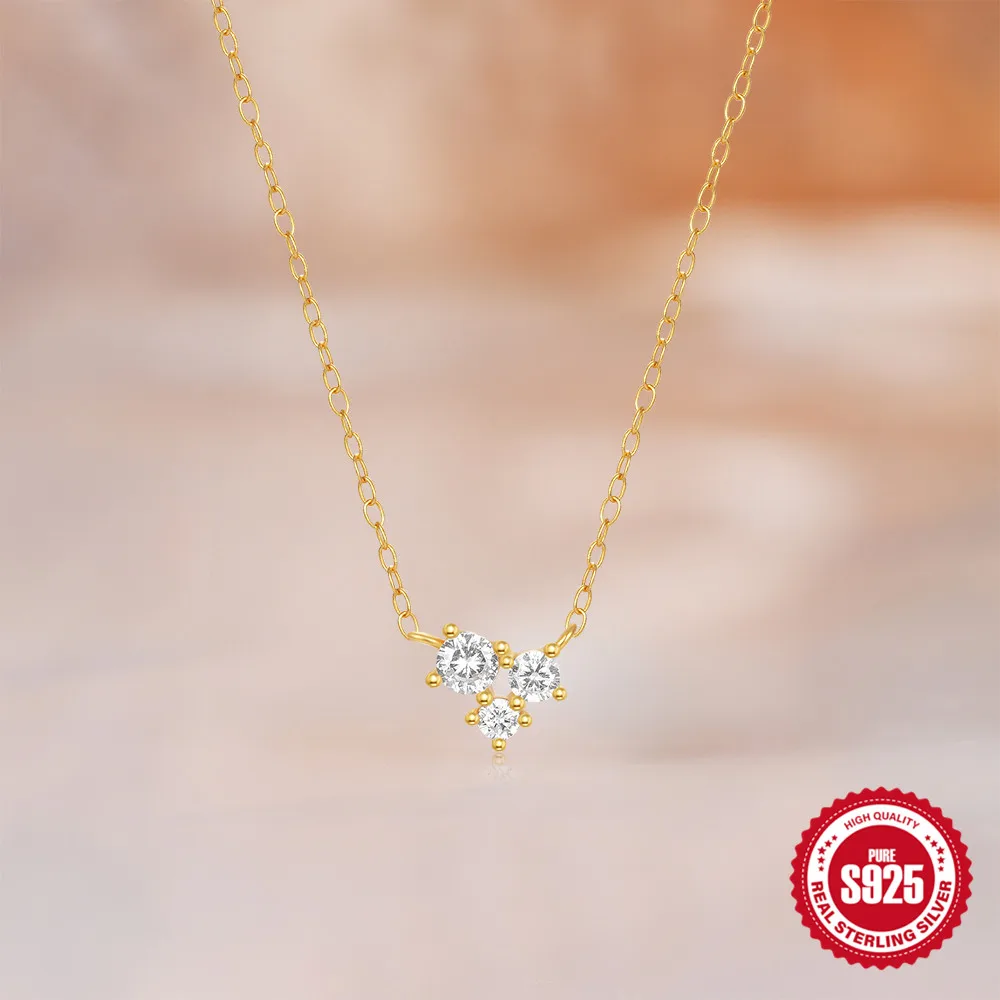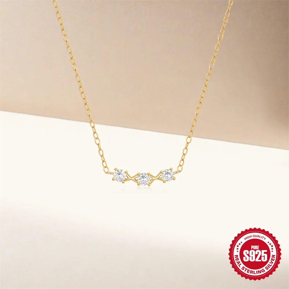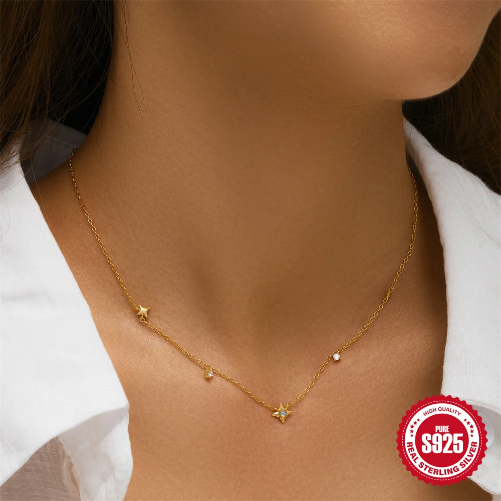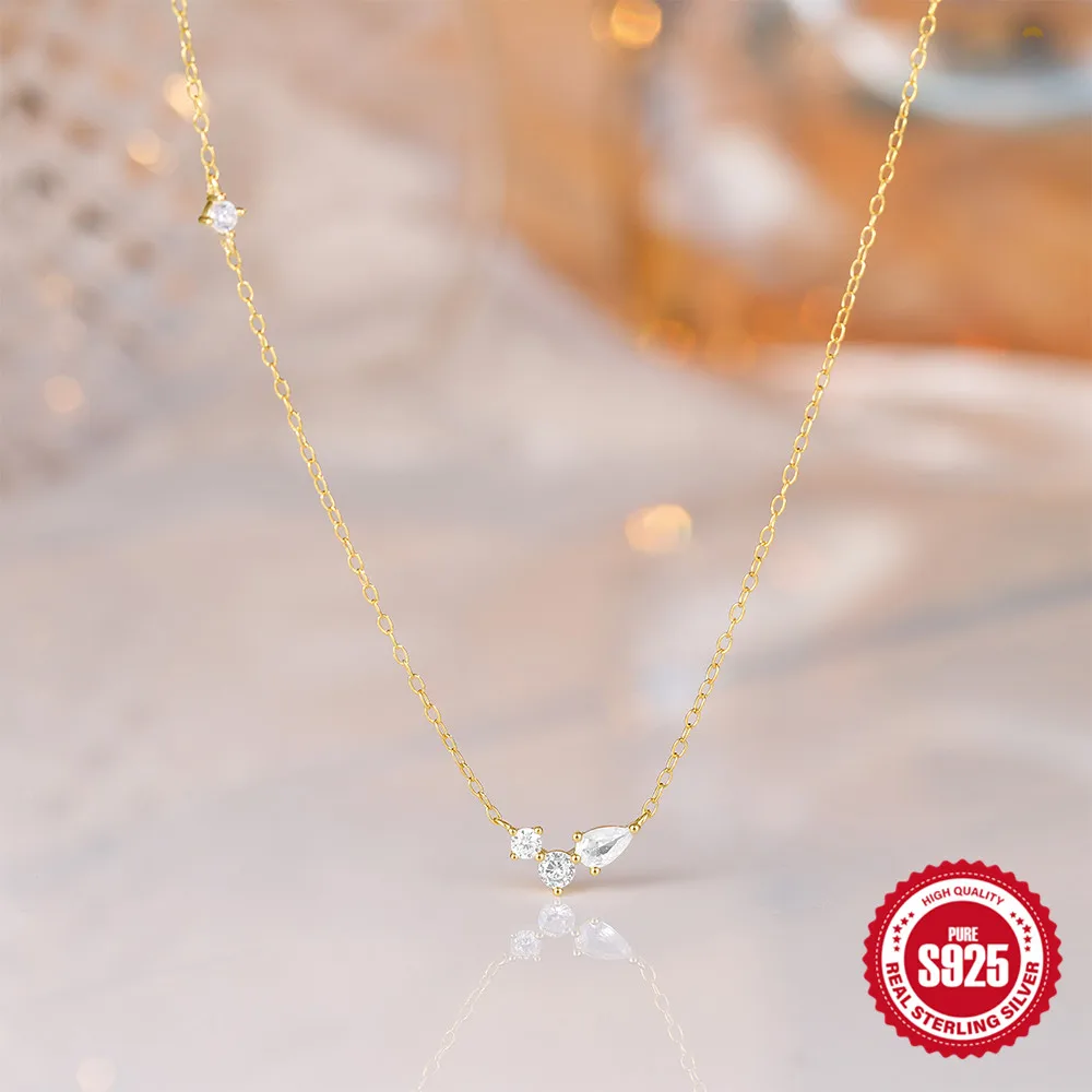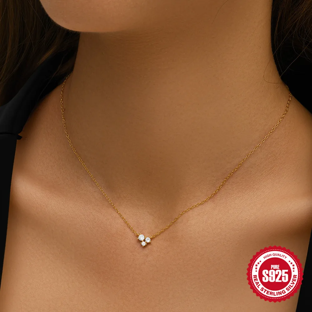 Aide 925 Silver Simple Layering Necklace For Women 18K Gold Plated Zircon Delicate Necklace ins Jewelry Wedding Party Gifts