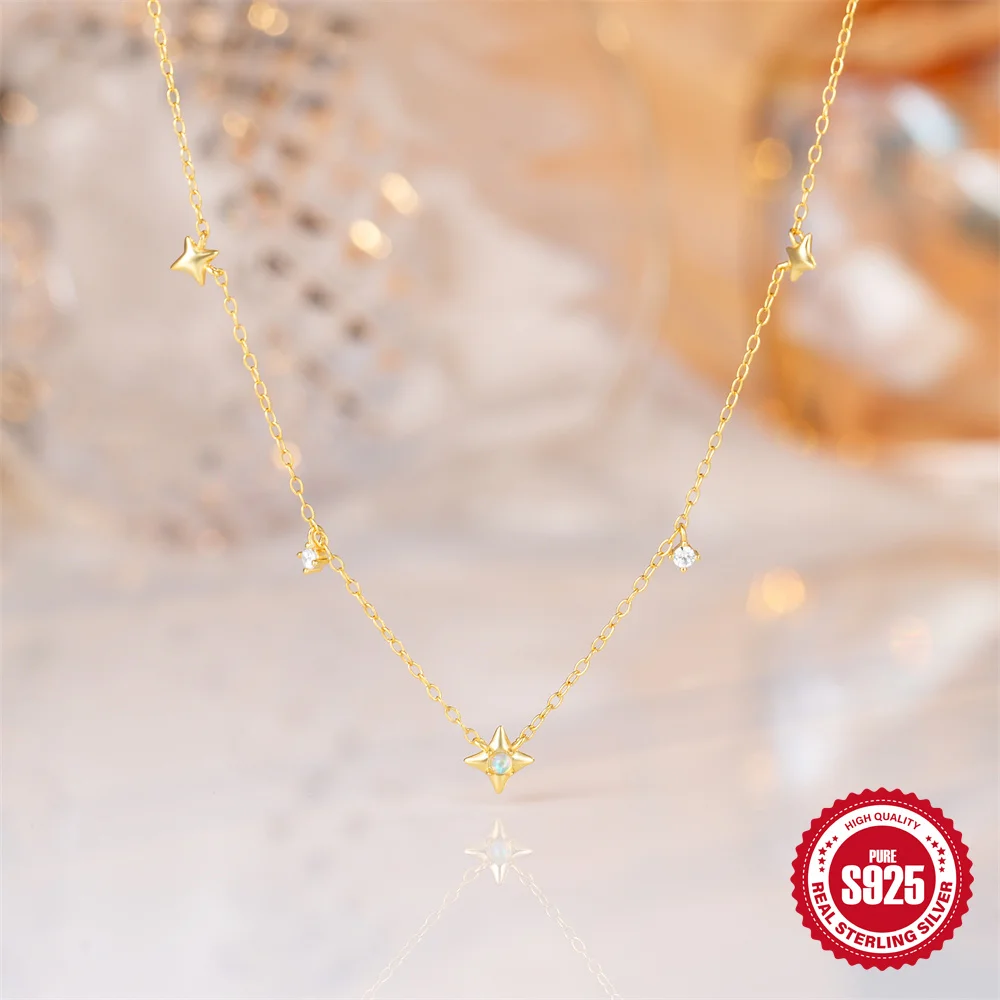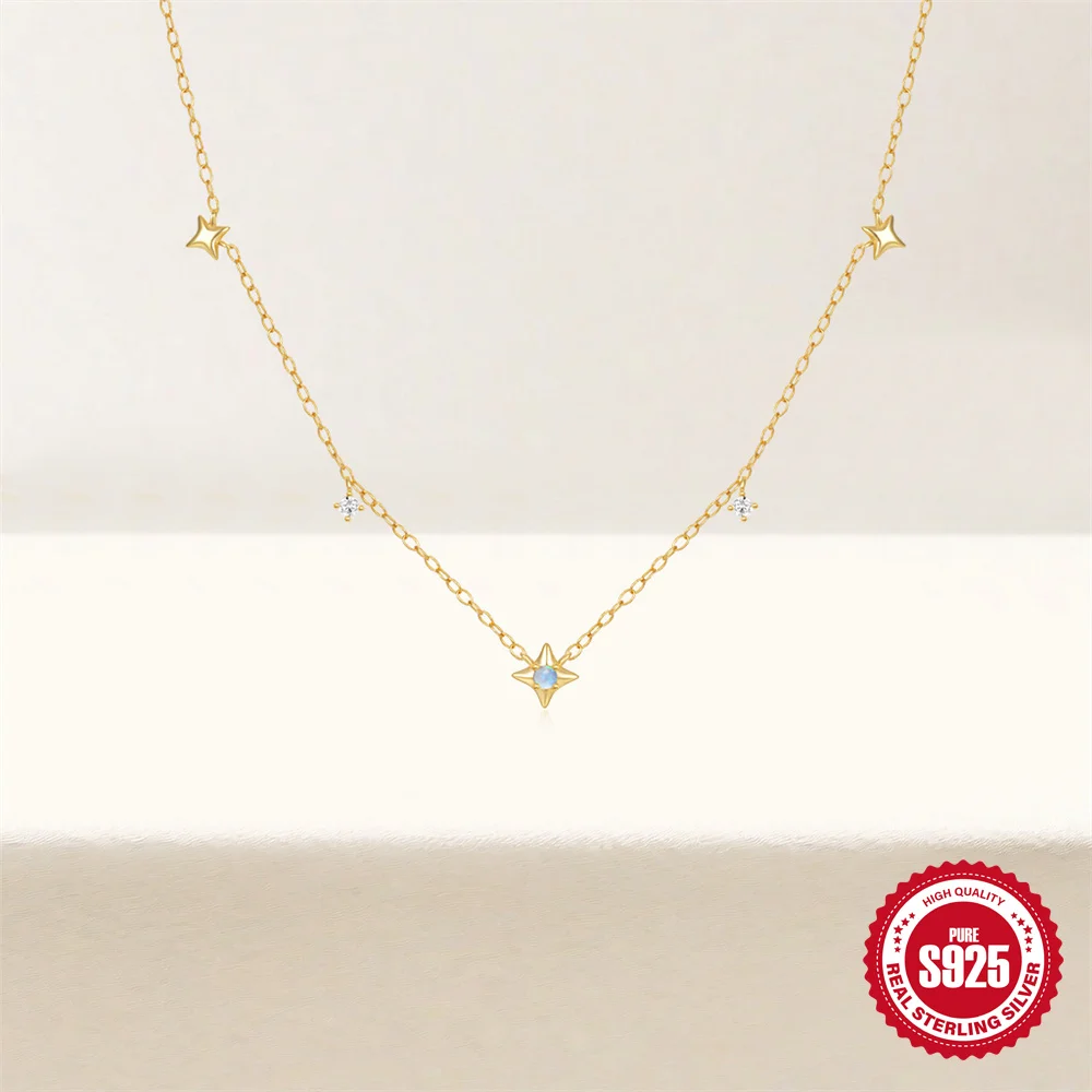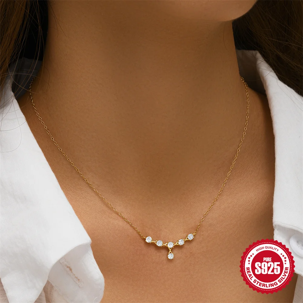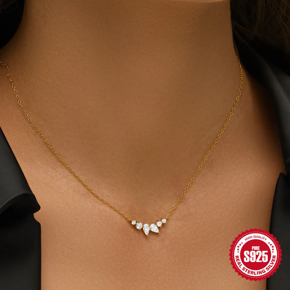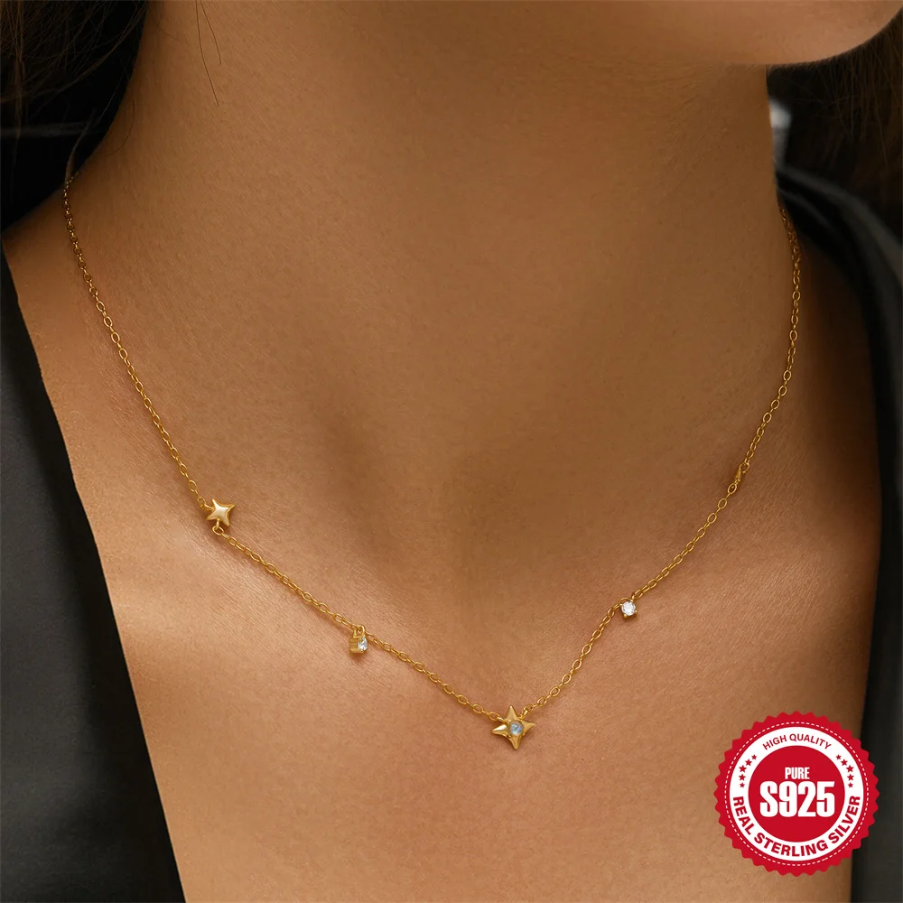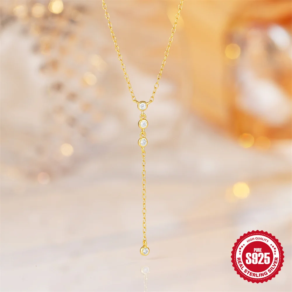 Aide 925 Silver Simple Layering Necklace For Women 18K Gold Plated Zircon Delicate Necklace ins Jewelry Wedding Party Gifts