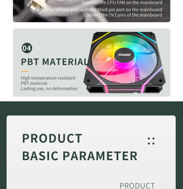• Optimized Power Interface :With a power interface of 5v-3pin ARGB, this fan allows for easy and efficient power management, ensuring it runs smoothly without draining your computer’s resources.