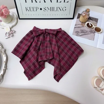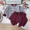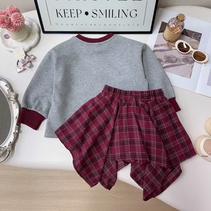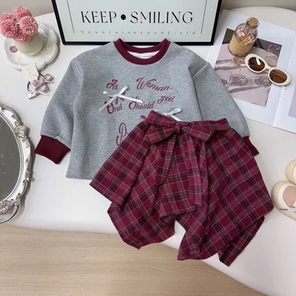 American Style Spring Baby Girls 2PCS Clothes Set 3D Bow Letter Print Hoodie Suits Retro Irregular Plaid Half Body Skirt Outfits