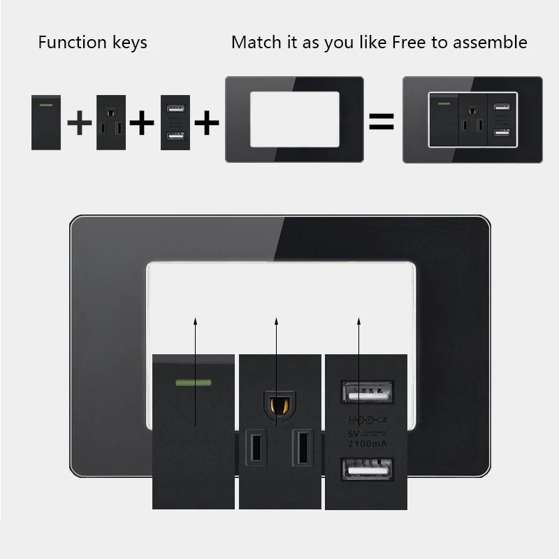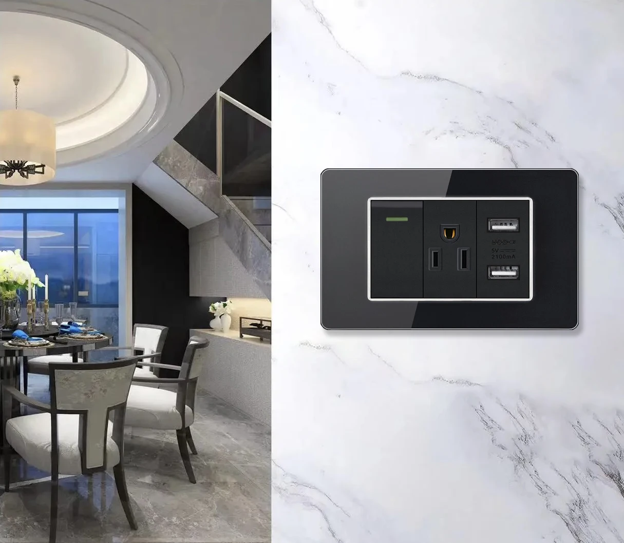 American Thai Standard USB Type-C 20W Fast Charging Power Outlet,Mexico with Smart usb c 3A Socket Wall Electric Light Switch