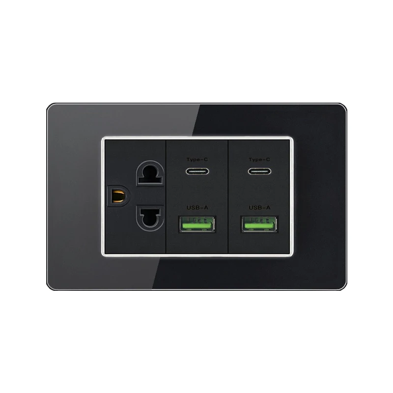 118 Series Tempered Glass Panel US/Mexico/Thai Standard Wall Power Socket Dual USB Type-c PD 3.0 20W Fast Charging