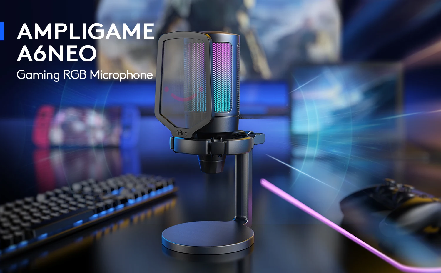 Experience superior sound quality with the Ampligame A6neo Microphone featuring a heart-shaped sound mode for sensitive sound capture and dual anti-spray design to minimize explosive sounds.