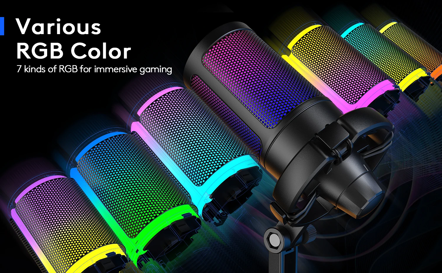 Automatically changing 7 RGB lighting modes make your microphone looks fancy and cool. Enhance your gaming setup with dynamic RGB lighting effects that create an immersive atmosphere, making your channel stand out.