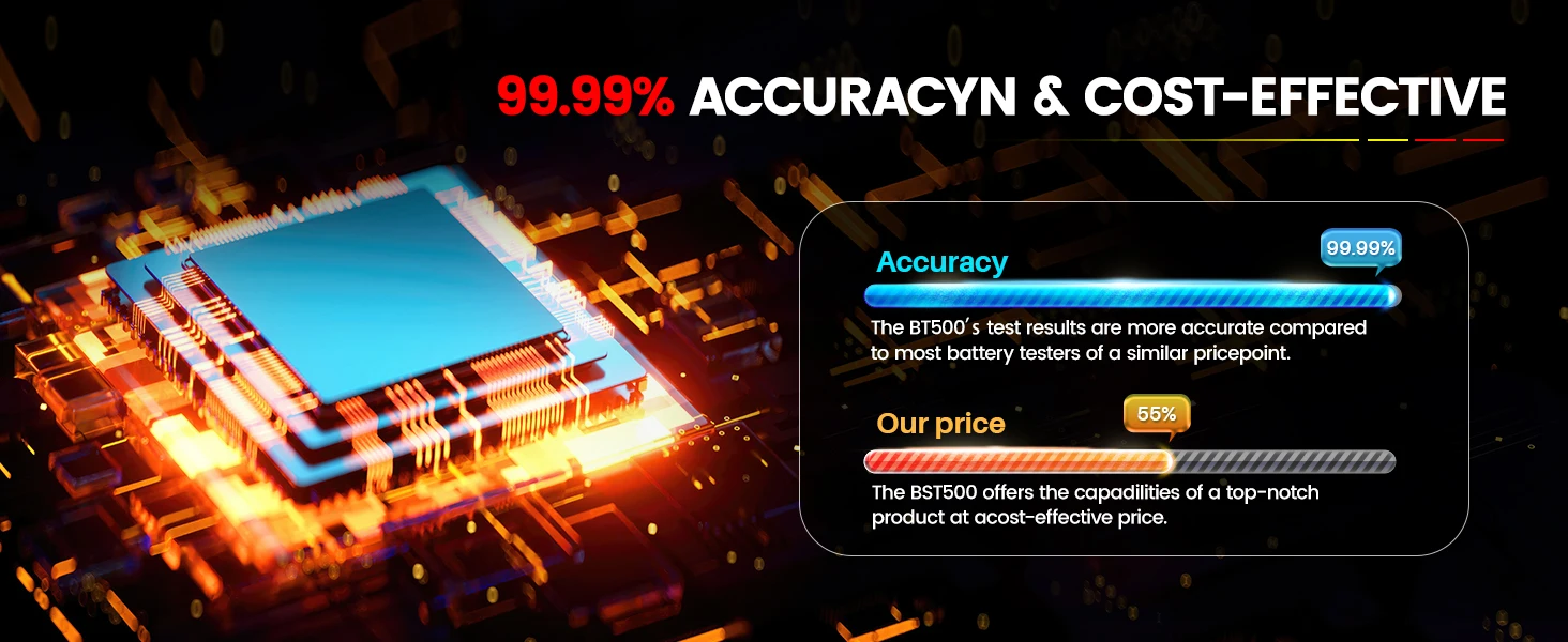 Our alternator tester adops the state-of-the-art conductance testing technology in the world ,testing result up to 99.99% accuracy, in the word to easily,quickly and accurately measure the Actual cold start current performance of vehicle batteries,healthy state of the battery, and common fault of the vehicle starting system and charging system,BST500 provides you with accurate test results in seconds,can help people to find the find the problem accurately.