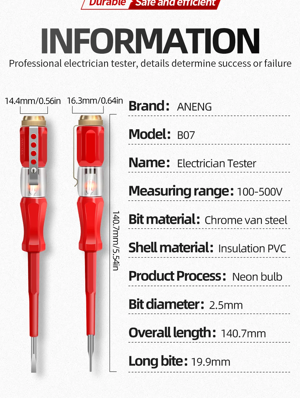 ANENG B07 Tester Scrwdriver Detective Voltage Meter Detector Electric Test Pen Detector Test Mini Electricity Instrument Tools
